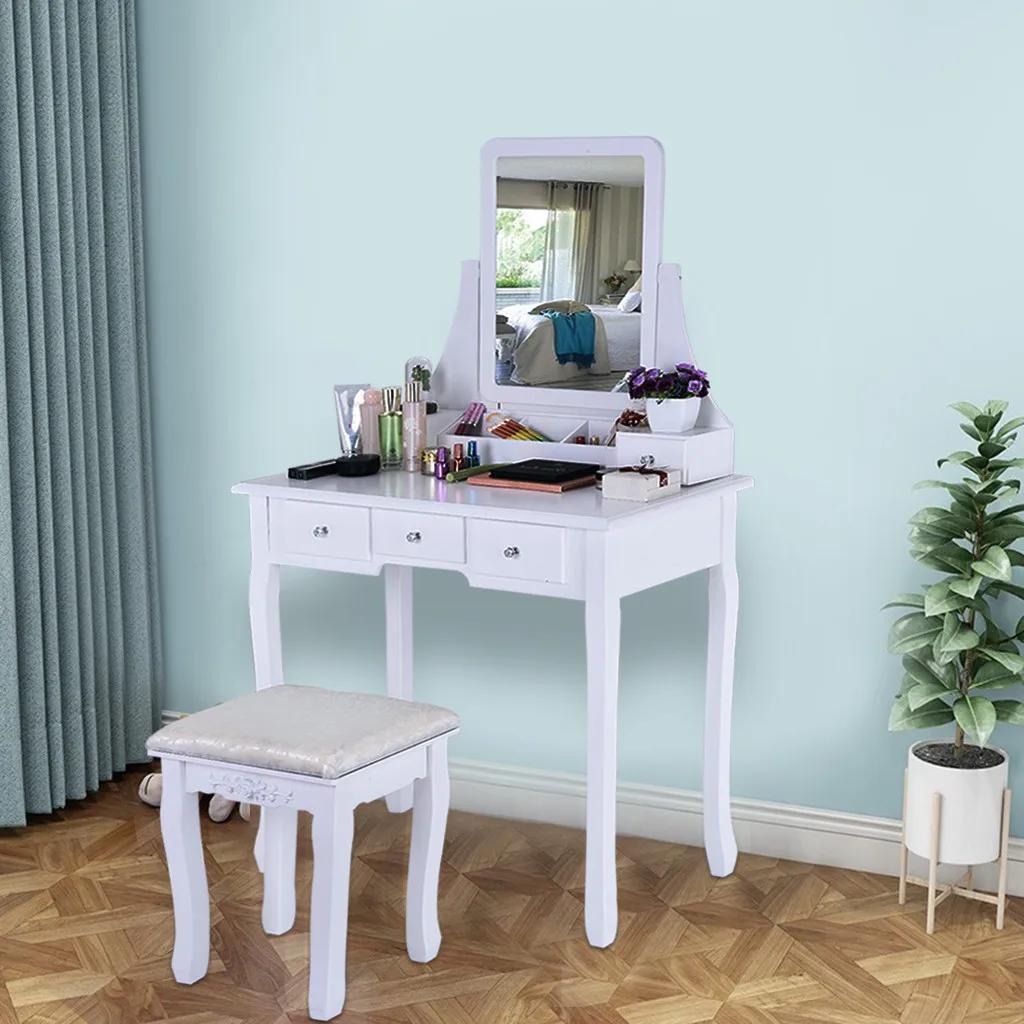 Съемное зеркало: с удалением верхней части зеркала, макияж стол может быть использован в качестве стола для ноутбука или Кабинета/Письма стол.