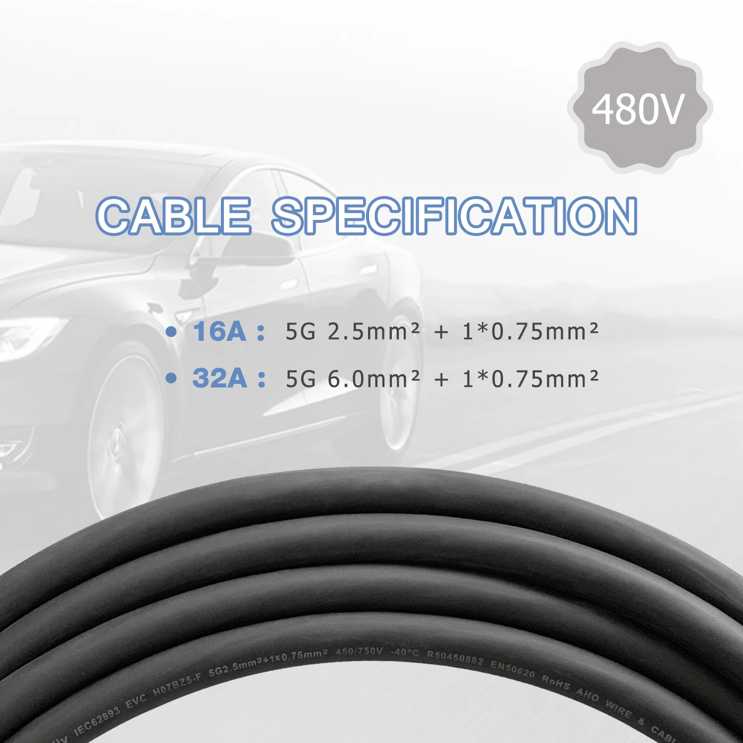Режим зарядки: Режим 3 зарядный кабель Разъем для зарядки: Тип 1 SAE J1772/Тип 2 IEC 62196-2 Длина шнура зарядного устройства: 16,4 футов для штепсельной вилки EV Ток: 16A / 32A Напряжение: 220 В/380 В