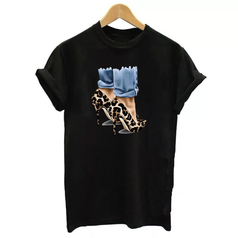 Девушка высокая наклейка в виде каблука Леопардовый принт полосатые нашивки для футболки Сделай Сам термонаклейка на одежду моющиеся Переводные нашивки утюгом