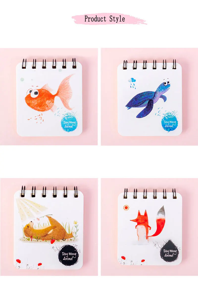 Новинка 2021, мультяшный портативный мини блокнот с катушкой, Жесткий Чехол, милый блокнот с животными, записная книжка, органайзер, школьные принадлежности для студентов, детский подарок Атрибут продукта: Название: блокнот с рисунком катушки Крышка: жесткий картон Внутренняя страница: 80 листов/160 страниц Тип: блокнот Размер: 8 см * 9,5 см Цвет: четыре цвета на выбор