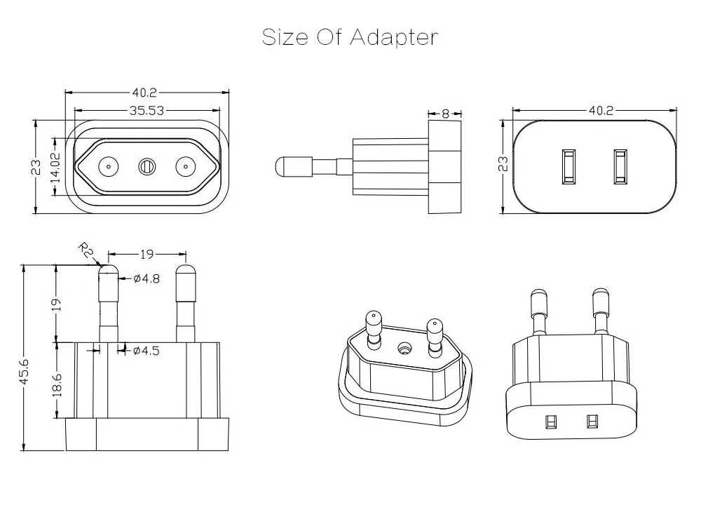 Штепсельная Вилка европейского стандарта, Размеры (Д x Ш x В): 19x4,8 мм