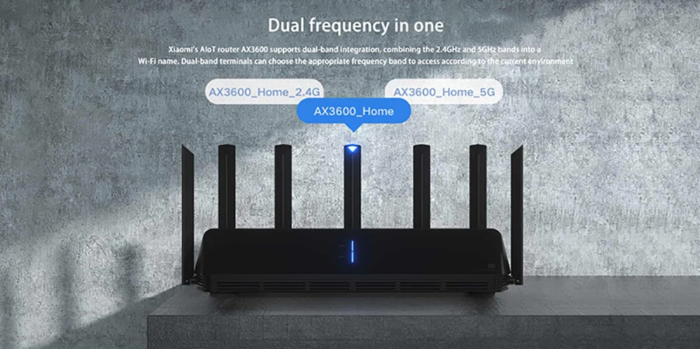 Маршрутизатор Mi AIoT AX3600 поддерживает двухдиапазонную интеграцию, объединяя диапазоны 2,4 ГГц и 5 ГГц в одно имя Wi-Fi. Двухдиапазонные терминалы могут выбрать подходящий диапазон доступа в соответствии с текущей средой, так что вам не придется беспокоиться о том, к какому Wi-Fi подключиться.