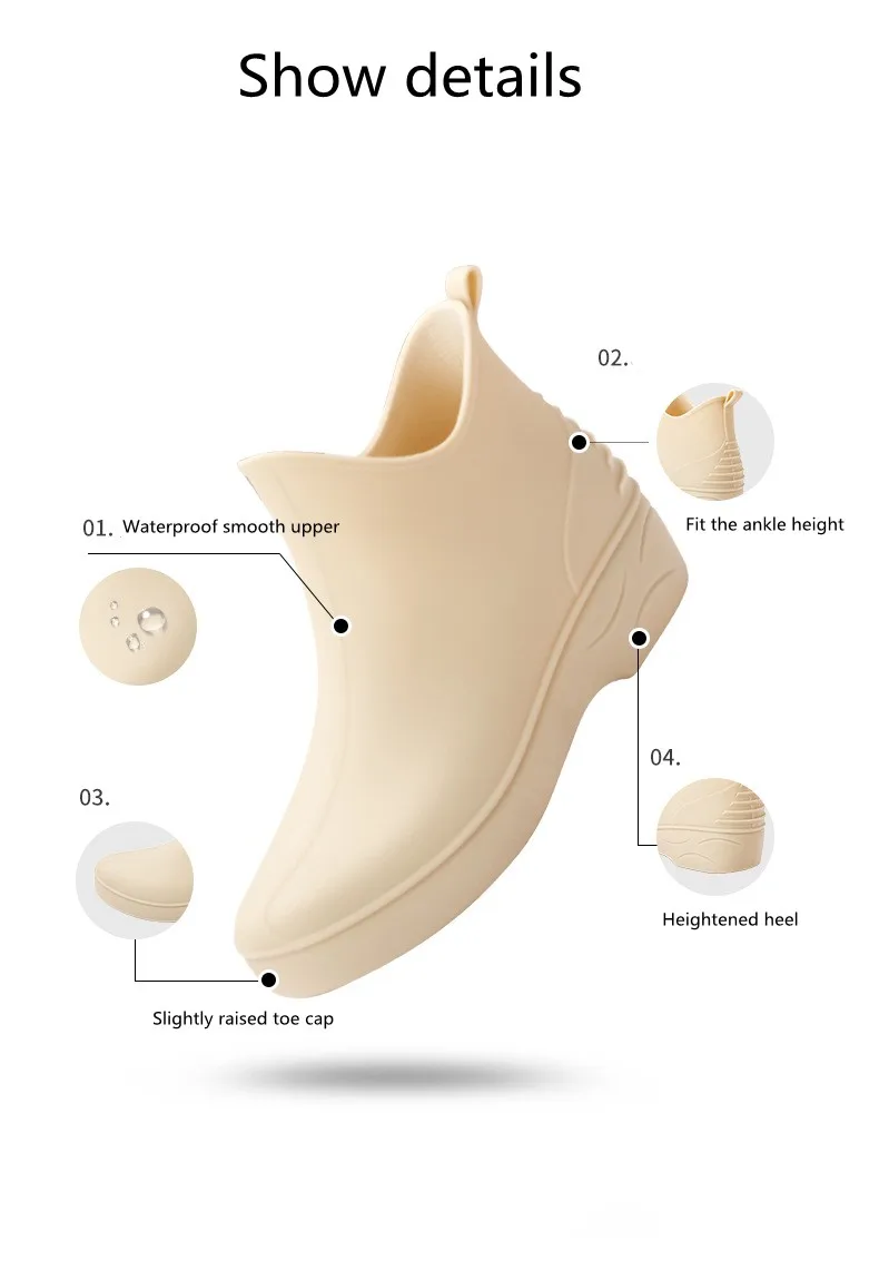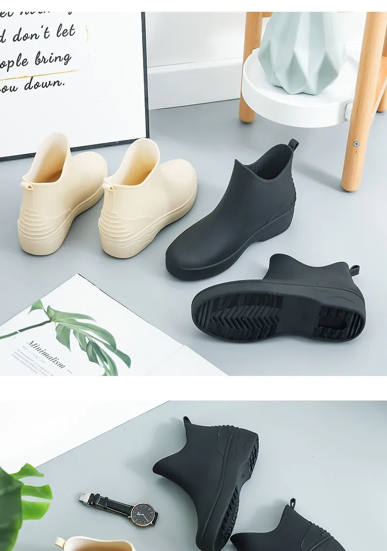 Название бренда: очарование отправки Источник: CN (источник) Подходящий Пол: Женский Материал верха: ПВХ Высота голенища: ботильоны Тип узора: однотонный Модель: O329 Тип каблука: WedgesBoot Тип: резиновые сапоги Материал подкладки: ПВХ Материал вала: ПВХ Форма Носка: круглый носок Сезоны: все сезоны Материал подошвы: ПВХ Высота каблука: Средний (3-5 см) Соответствует ли он стандартным размерам: соответствует стандартным размерам, подходит для вашего обычного размера