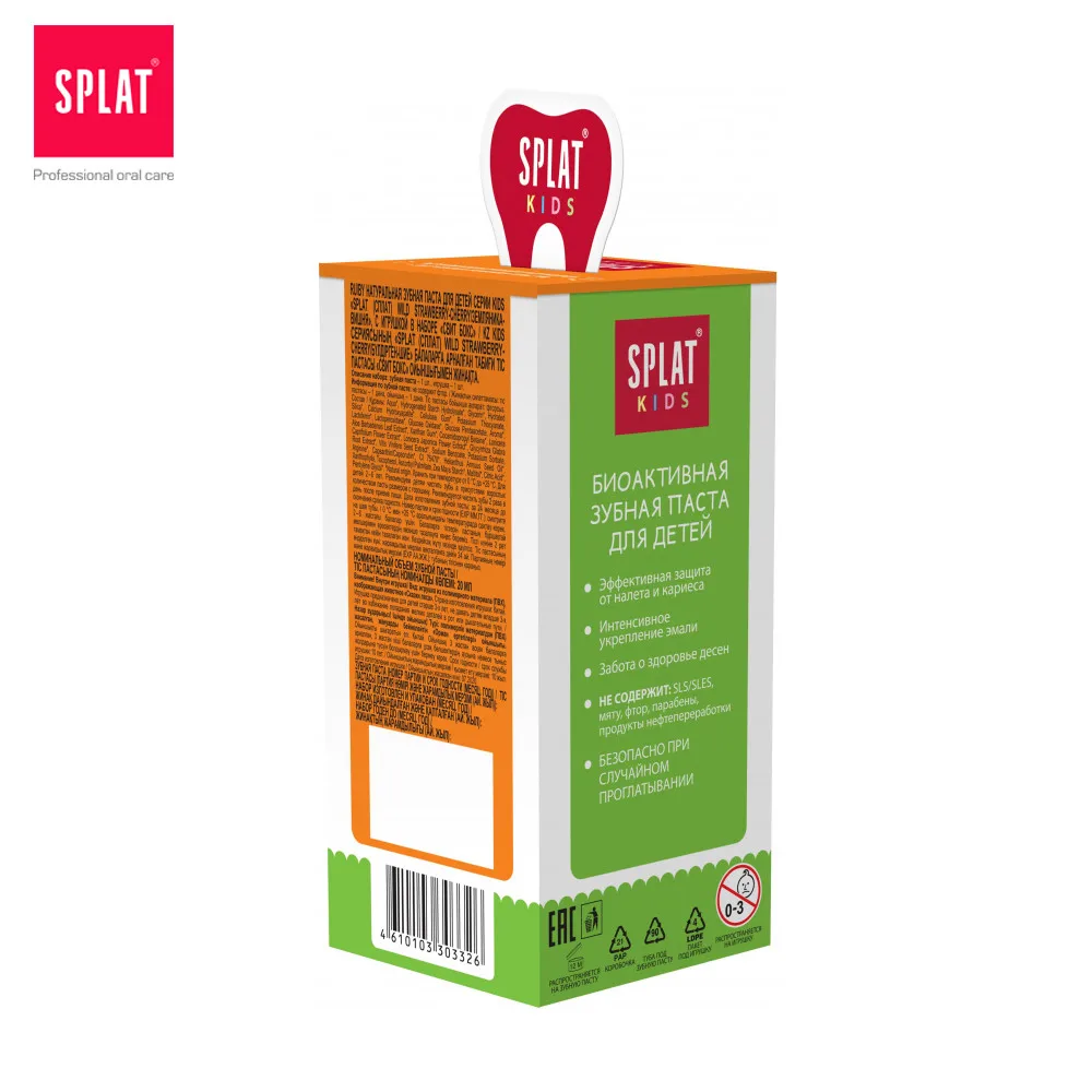 Натуральная зубная паста для детей от 6 до 11 лет серии SPLAT Junior BUBBLE GUM/ БАБЛ ГАМ, 20 мл , с игрушкой в наборе «СВИТ БОКС».