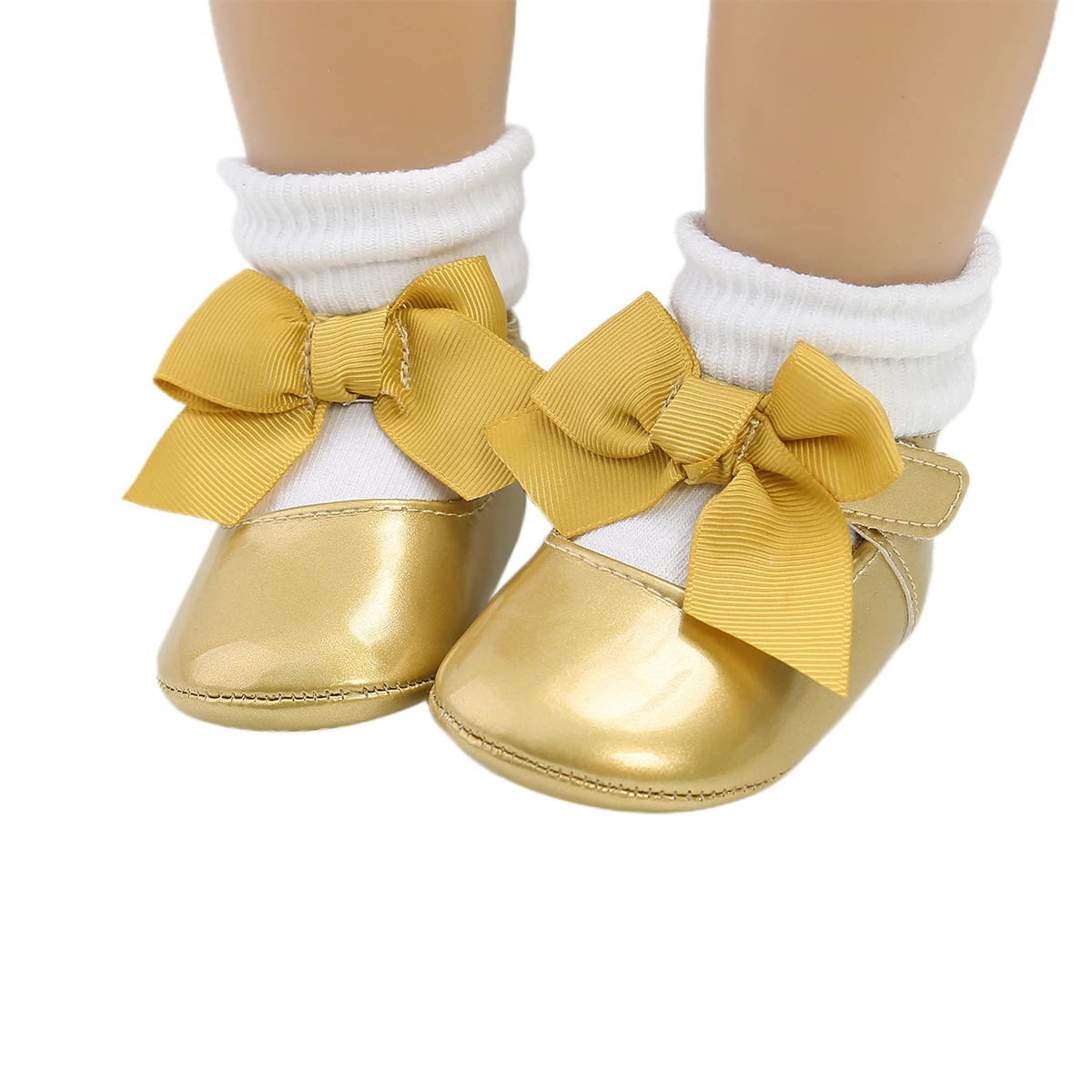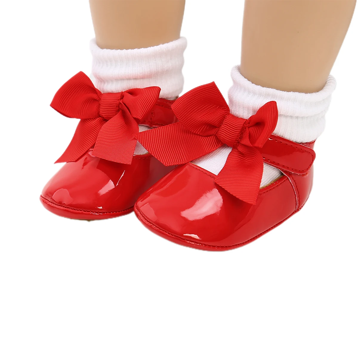 Обувь для крещения для маленьких девочек; Платье принцессы с мягкой подошвой; Обувь Mary Jane на плоской подошве с милым бантом из ленты; Нескользящая обувь для младенцев
