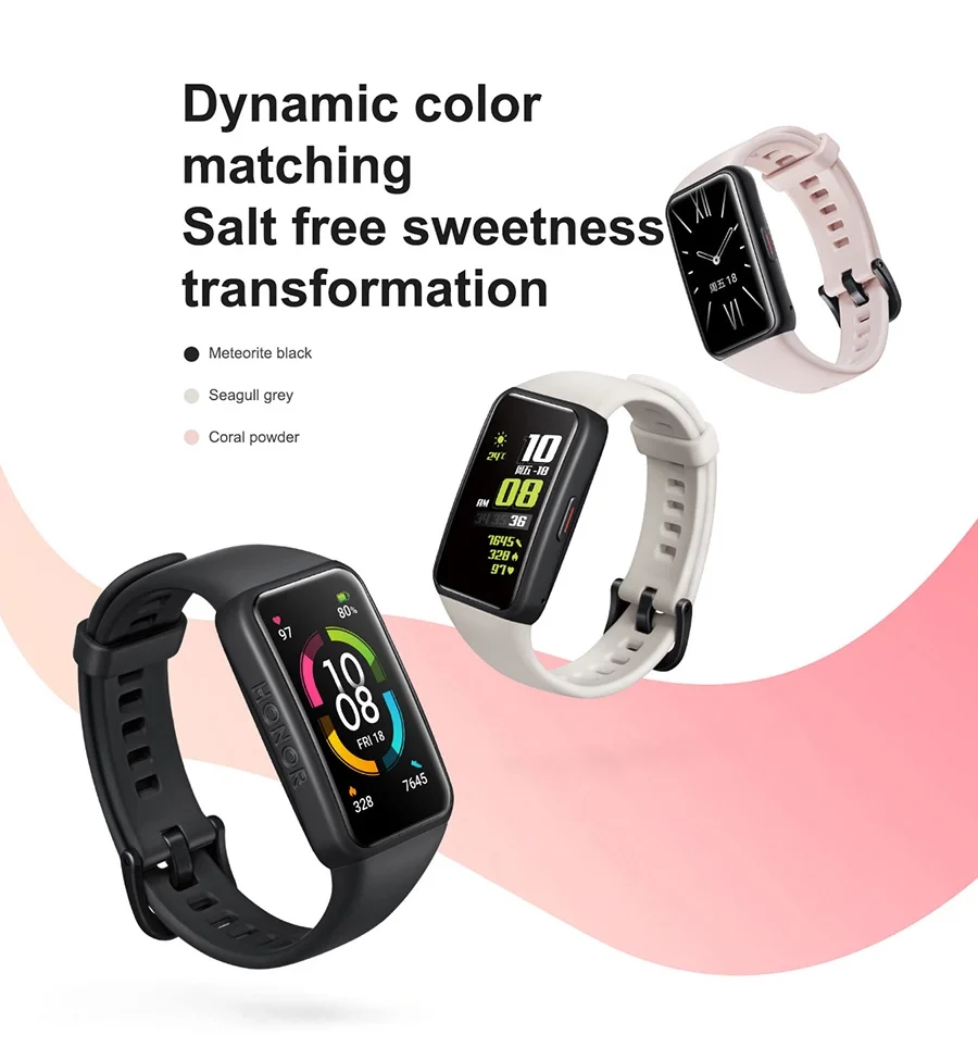 Закаленное стекло 2.5D arc, HONOR Band 6 имеет универсальный внешний вид, что делает больше прогресса в плавном прикосновении к экрану.