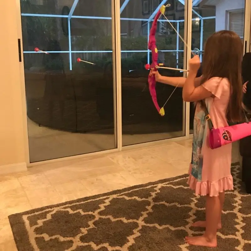 ★Включает в себя: набор с бантиком и стрелами поставляется с красивым детальным бантом, колчан и 3 стрелами. Стрелки поставляются с зубчатым концом для легкого прицеливания и головкой на присоске, которая надежно прилипает к мишеням.