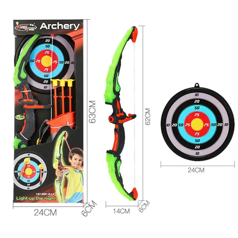 Светильник для стрельбы из лука, лук и стрела, игрушечный набор для мальчиков и девочек с 3 стрелами на присоске, мишенью и колчанином