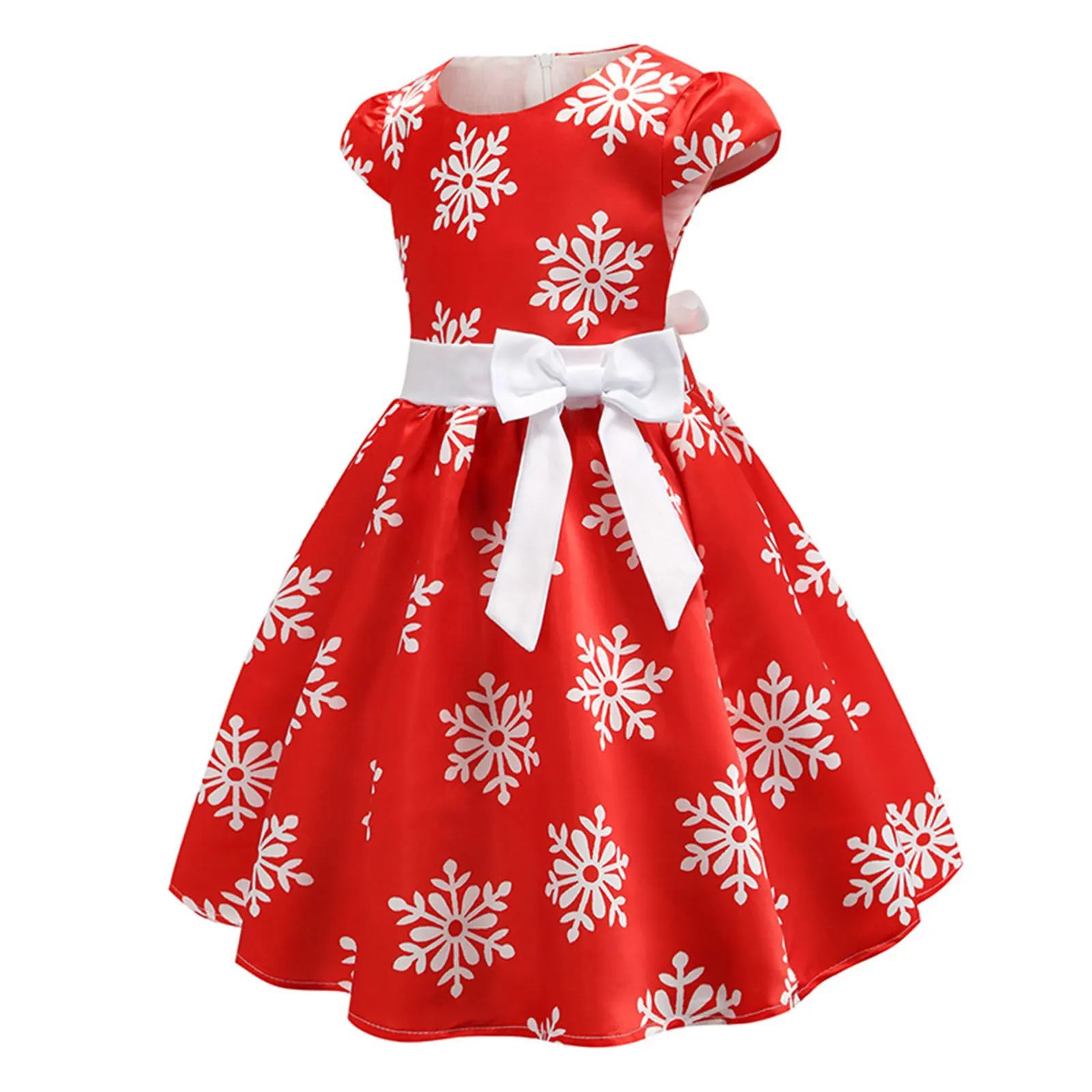 Детский Рождественский костюм для девочек; Платье принцессы с принтом снежинки и бантом.