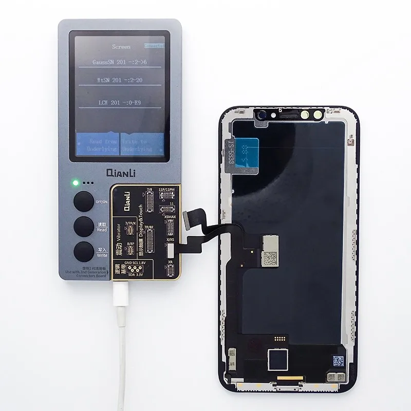 Это позволяет передавать данные чипа с оригинального экрана для iPhone на Сменный экран. Эта процедура восстанавливает оригинальный цвет.