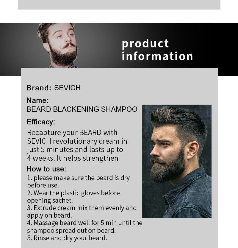 1. Этот шампунь-краска для черной бороды использует естественную травяную формулу, он нежный, безвредный, может потемнеть, защитить, отремонтировать и питать вашу бороду.