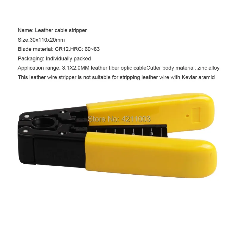 2в1 FTTH оптическое волокно для зачистки с волоконно-оптическим кабелем Миллер набор инструментов для продажи Название продукта: двойной порт для зачистки оптического волокна Диапазон: используется для прокладки 125um-3мм обшитого волокна Описание диафрагмы: оболочка из большого hole-1.98mm волокна Небольшое отверстие-250 ~ 125 мкм покрытие Название: трехпортовая волоконная игла для зачистки Диапазон: используется для прокладки 125um-3мм обшитого волокна Описание диафрагмы: большое отверстие-перемычка кожи (без определенного значения) Среднее отверстие-900 ~ 250 мкм мягкий защитный слой Небольшое отверстие-250 ~ 125 мкм покрытие Название продукта: кожаная зачистки кабеля Размер: 30x110x20мм Материал лезвия: CR12.HRC: 60 ~ 63 Упаковка: индивидуально упакованная Диапазон применения: 3.1X2.0M кожаный волоконно-оптический кабель Материал корпуса: цинковый сплав Примечание: Эта кожаная зачистки не подходит для зачистки кожаной проволоки с Kev lar aramid