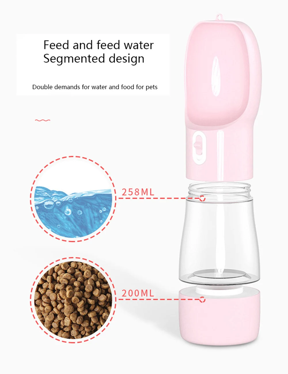 2. Сегментированный дизайн: верхняя часть-чашка для воды, а нижняя-контейнер для еды.