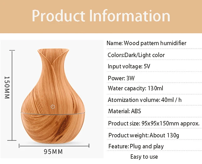 Описание товара: Этот увлажнитель работает на основе оригинального внешнего вида, так что вода может быть открыта более легко и световой эффект более достаточен. Этот увлажнитель может использоваться с небольшим количеством эфирного масла для ароматерапии, но Замена губчатых палочек примерно через месяц также позволит быстрее сократить срок службы увлажнителя, потому что остаточное масло засорит распылитель. Поэтому, когда клиенты добавляют эфирное масло для ароматерапии, пожалуйста, используйте его осторожно.