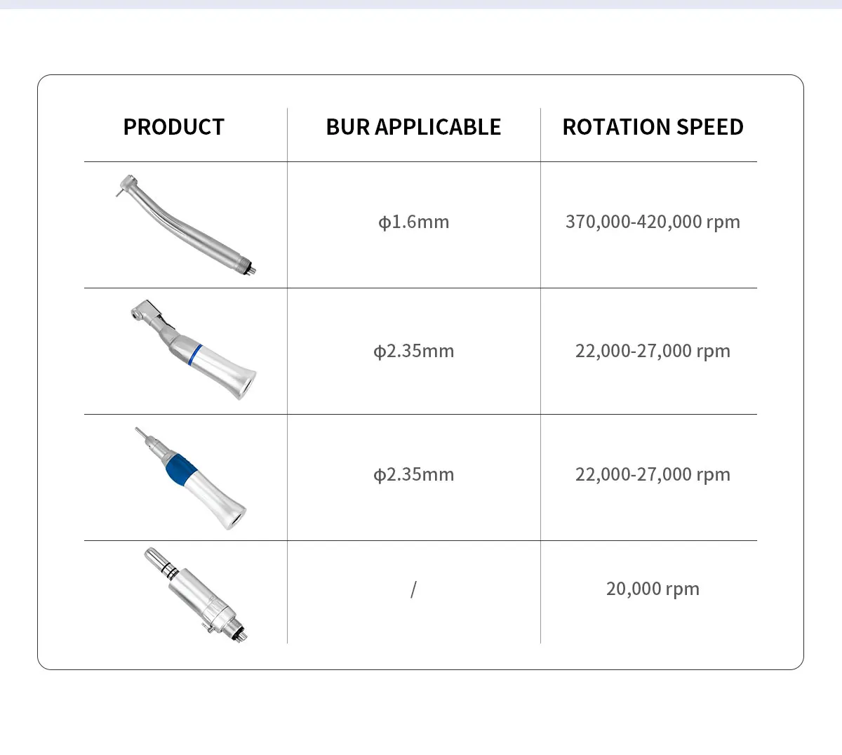 -Максимальная скорость wi-угловой наконечник: 25000 об./мин..
