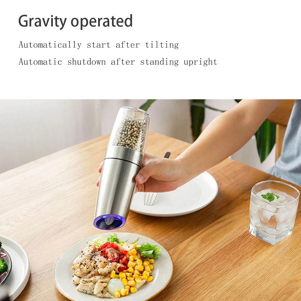 💖【Автоматическая работа 】 просто переверните вверх дном и получите новую молотую соль или перечную мельницу электрическую. Позволяет активировать специи, которые вам нравятся, одной рукой, а другой рукой свободно обрабатывать другие кухонные задачи.
