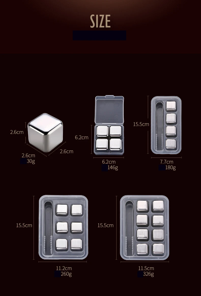 Прочный, пищевой и экологически чистый кубик льда из нержавеющей стали 304 с сертификатом-кубик льда изготовлен из нержавеющей стали 304, который не токсичен и полезен для человеческого организма. Больше не беспокойтесь о превосходном качестве для вас. Наши прочные, безопасные для пищевых продуктов кубики льда из нержавеющей стали устойчивы к коррозии, идеально подходят для всех типов виски вина, сохраняют ваш напиток холодным дольше.