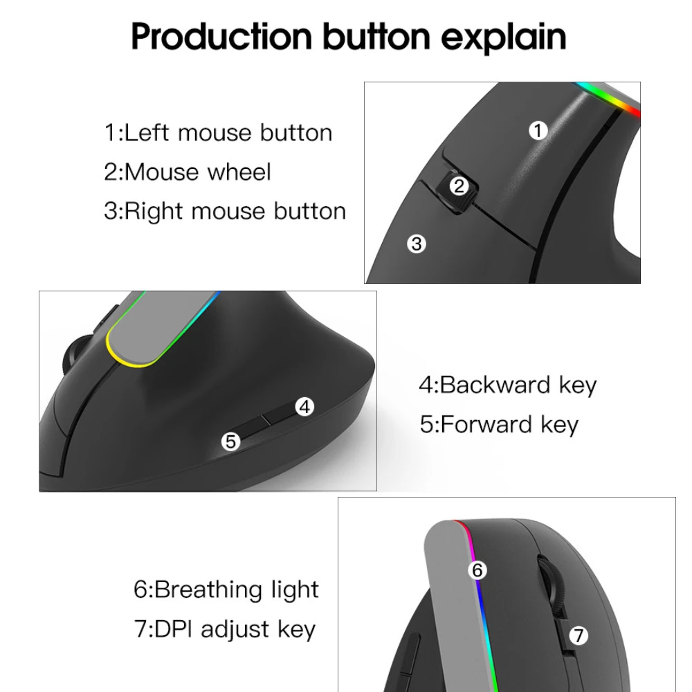 Название продукта: Беспроводная вертикальная мышь для компьютера