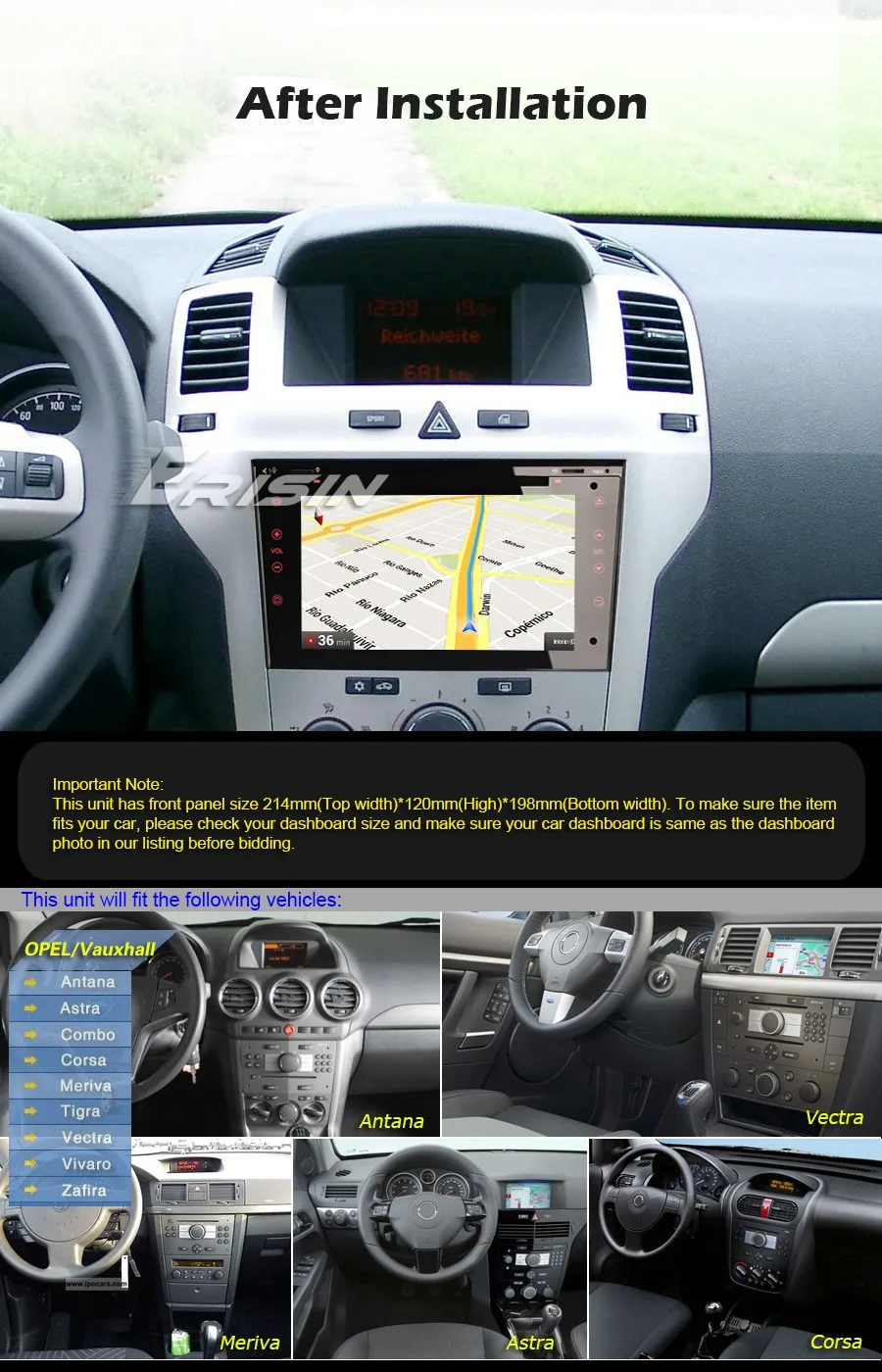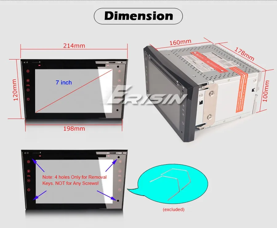 Этот блок имеет размер передней панели214 мм (ширина верха) * 120 мм (высота) * 198 мм (ширина дна). Чтобы убедиться, что товар подходит вашему автомобилю, пожалуйста, проверьте форму и размеры вашего оригинального автомобильного медиаплеера, что соответствует описанию в нашем списке перед подачей заявки.