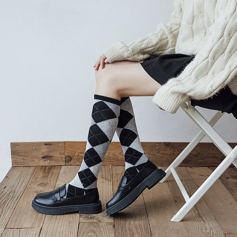Упаковка: 1 пара чулок до колена с ромбовидным узором