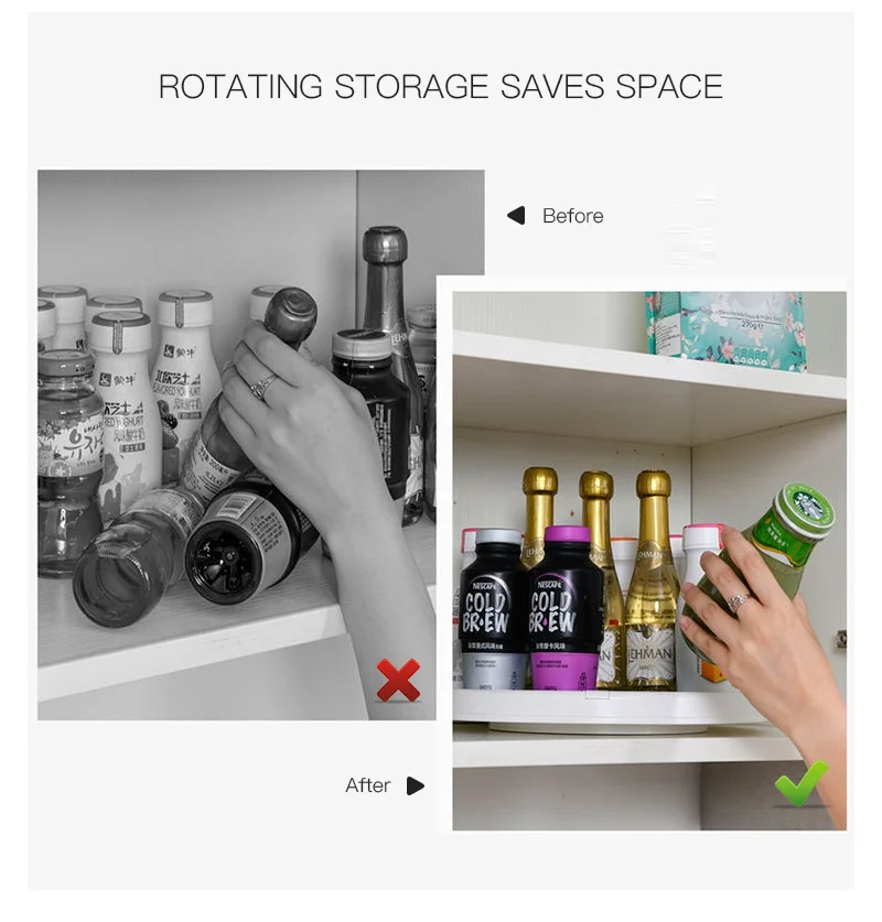 -Легкое скольжение, вращающееся пространство для хранения максимально увеличивает пространство шкафа и поддерживает кухню организованной и аккуратной.