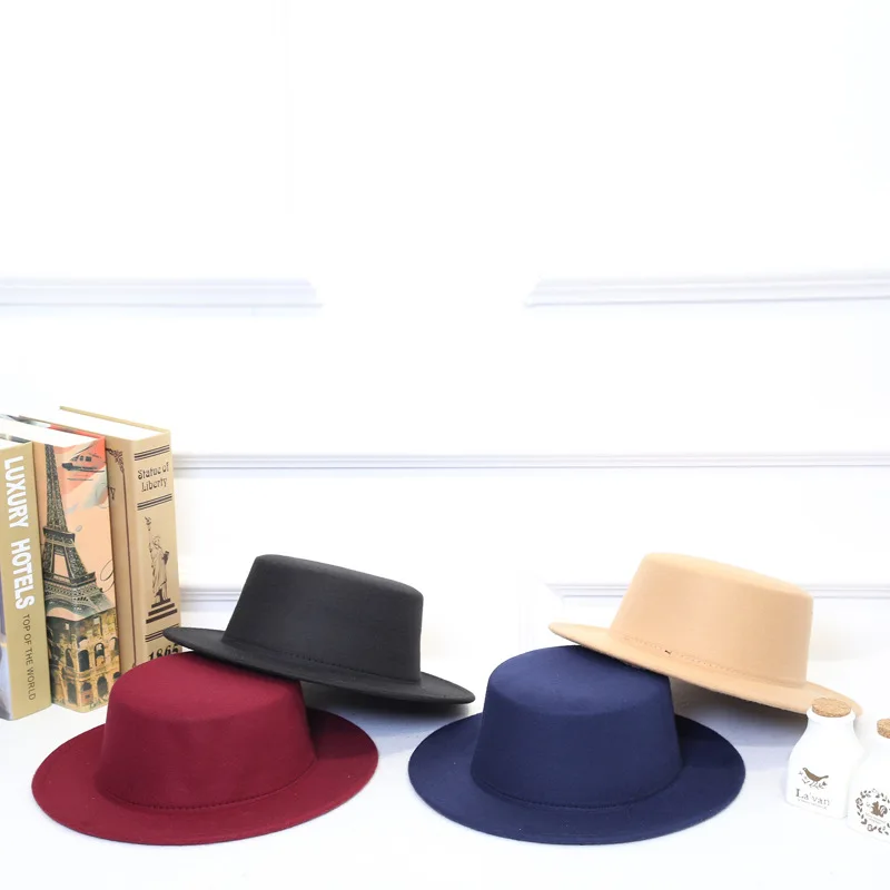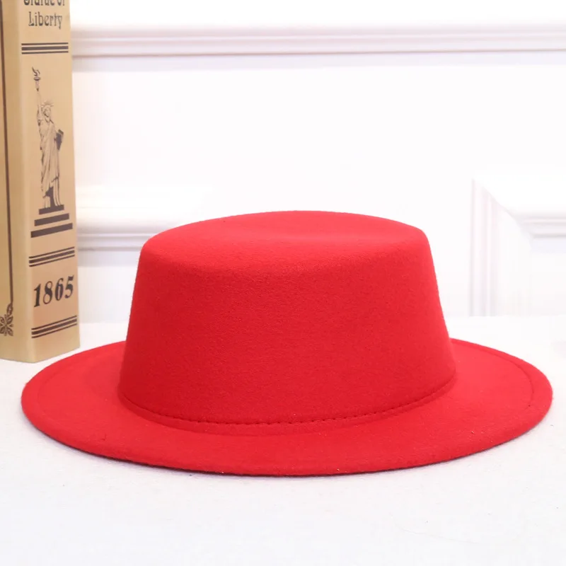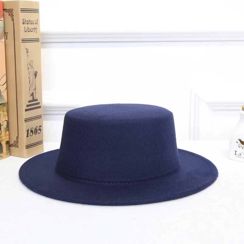 Новые Классические однотонные фетровые костюмы для мужчин и женщин, смесь искусственной шерсти, джаз Кепка с широкими полями, простые церковные Дерби, плоский Топ, ZZ-360