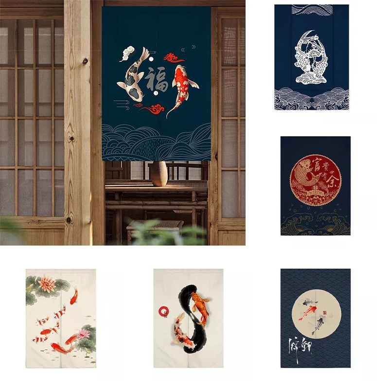 Koi карп шаблон занавеска на дверь в спальню половина панели занавес кухня гостиная занавес комнаты перегородка украшение дома