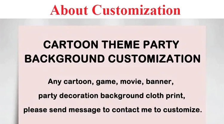 Мы можем настроить любой мультфильм, игры, кино, баннер, Декорации для вечеринки и ваши собственные фотографии, пожалуйста, свяжитесь со мной, если вы хотите настроить.