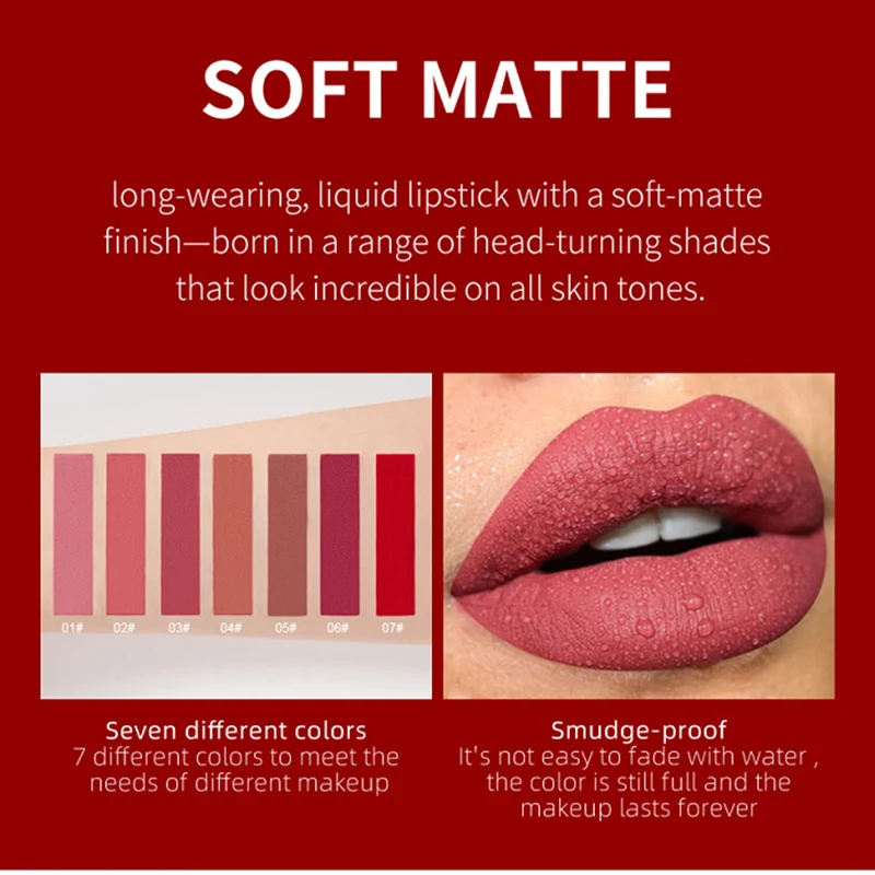 1. Бархатистая гладкая матовая глазурь для губ, которая увлажняет губы, не высыхает.
