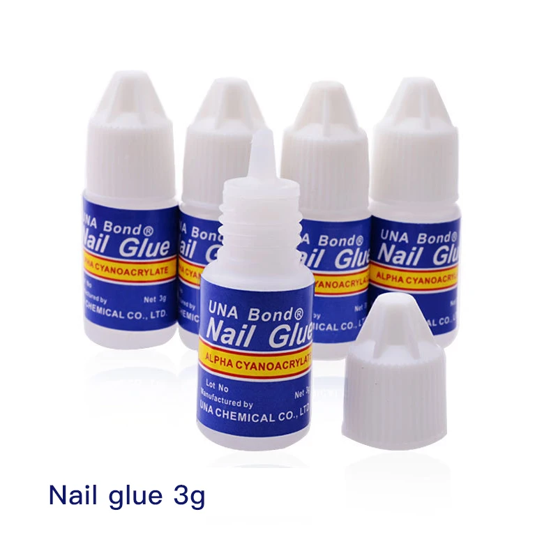 1. False Nails: To apply the glue on the back of the false nails through a brush, then push the false nails from the nail top to the nail bottom; after being pressed, the false nails would be glued.