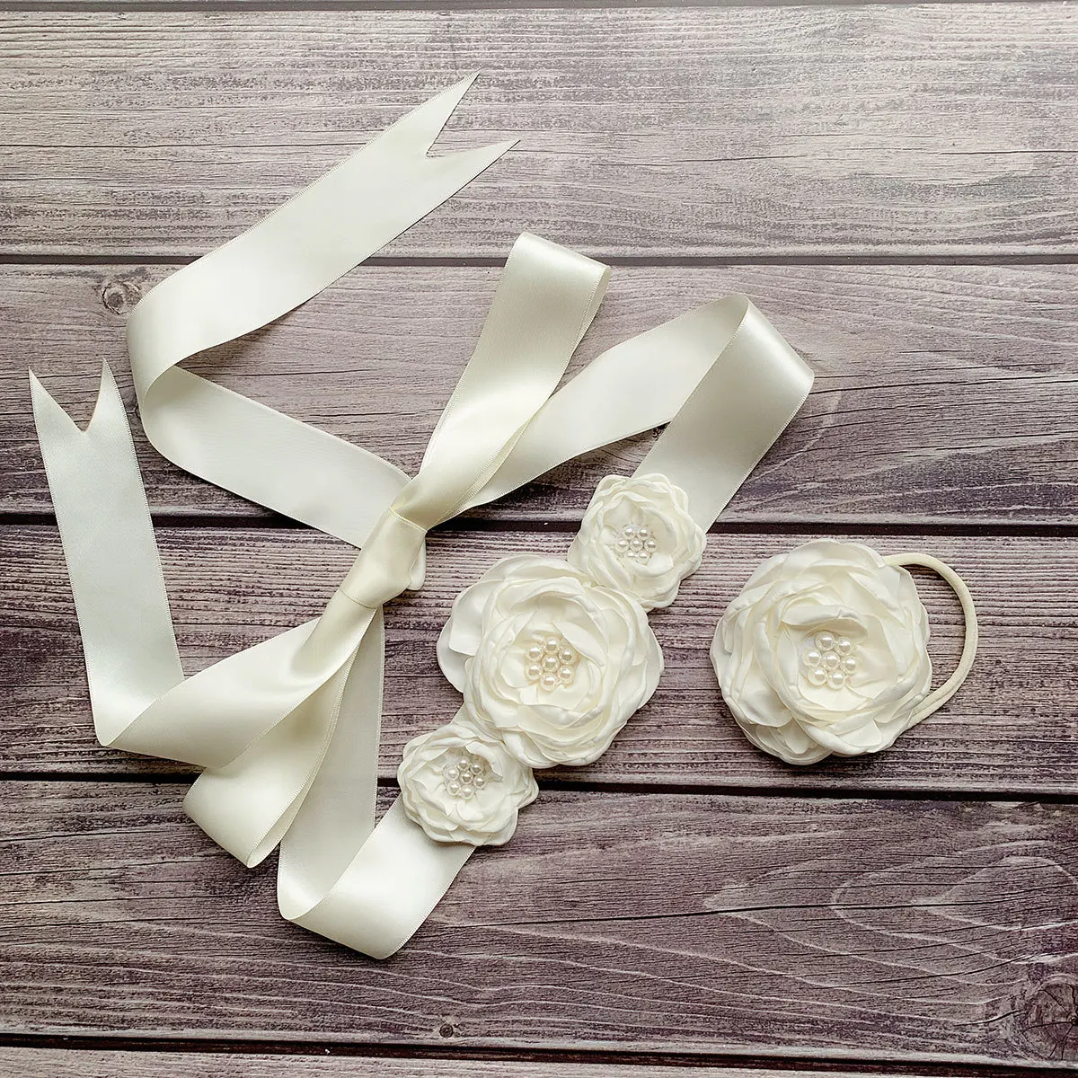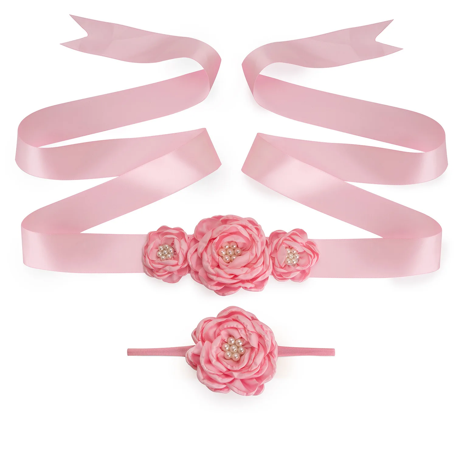 Оригинальное новое платье с цветочным узором для девочек Детский пояс и повязка на голову, комплект для беременных женщин, Цветочный Пояс, свадебные аксессуары для фотографирования KG10
