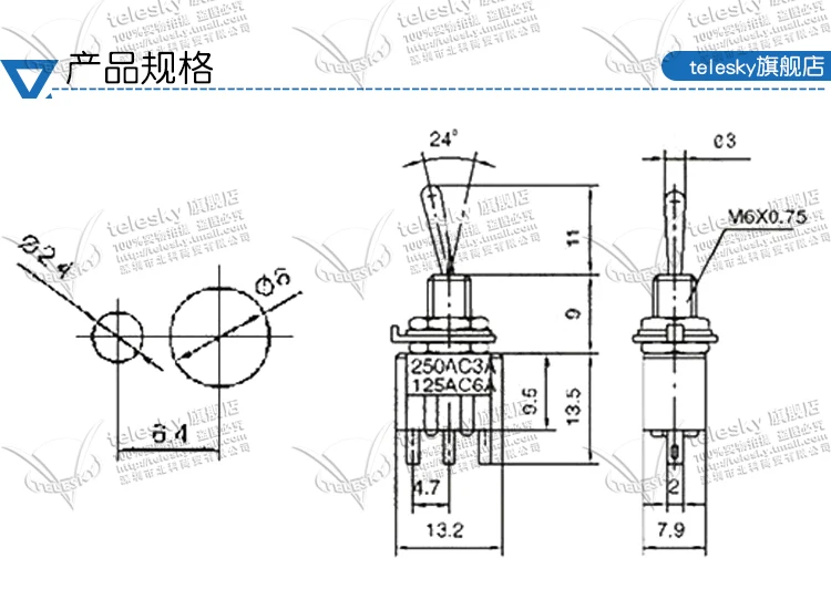 Тумблер 102 встряхнуть один-gang трехногий вторая передача 6A / 125V 3A / 250V
