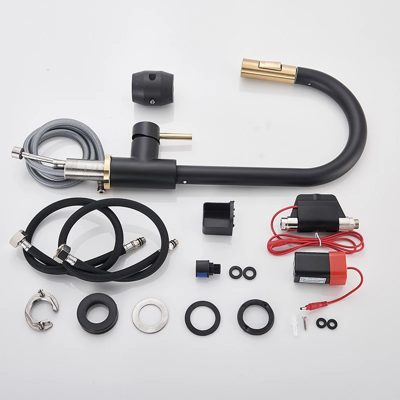 Смеситель для кухни SHBSHAIMY сенсорный, черный/золотой, с датчиком поворота