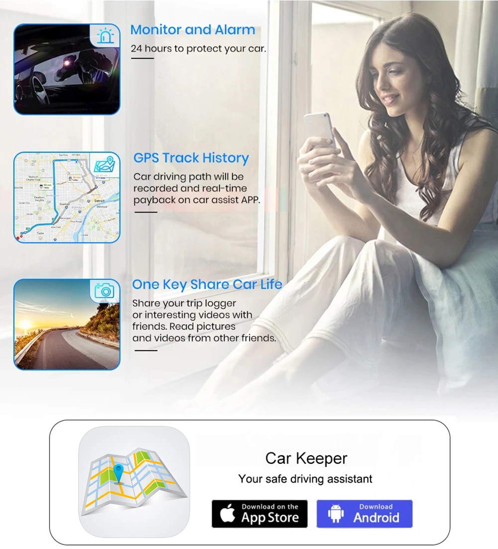 Просмотрите обзор зеркального видеорегистратора на смартфоне. Продолжайте заниматься серфингом в Интернете и удаленно Отслеживайте путь вождения автомобиля. Загрузите важные видео и один ключ, чтобы поделиться красотой вождения автомобиля.