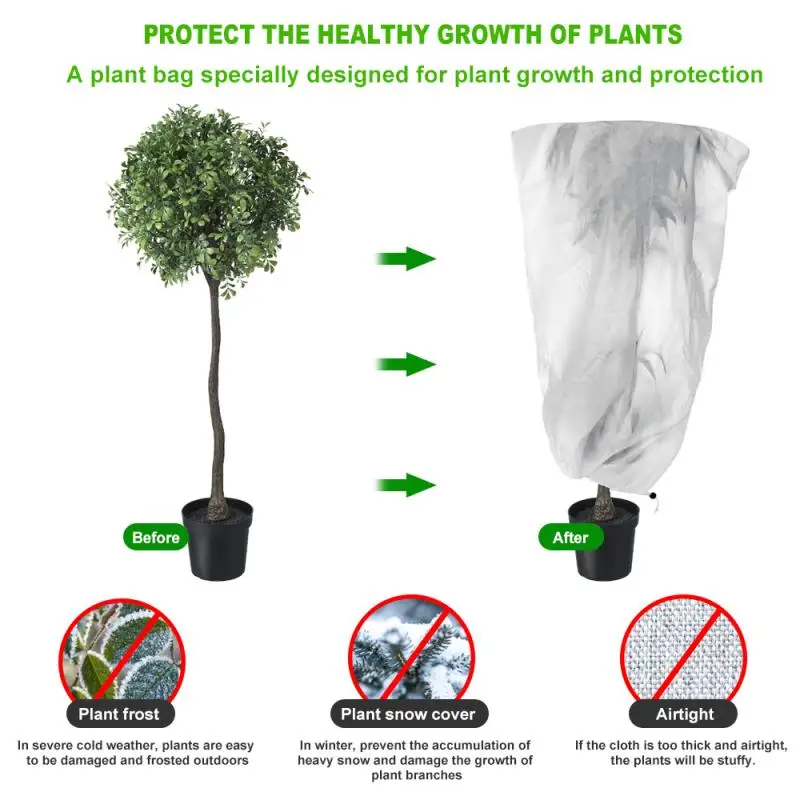 -Дизайн на шнурке: чехлы для растений достаточно прочные и большие, чтобы легко поместиться в растения, И есть шнурок для затягивания, который делает его безопасным против ветра с простым в использовании днища.