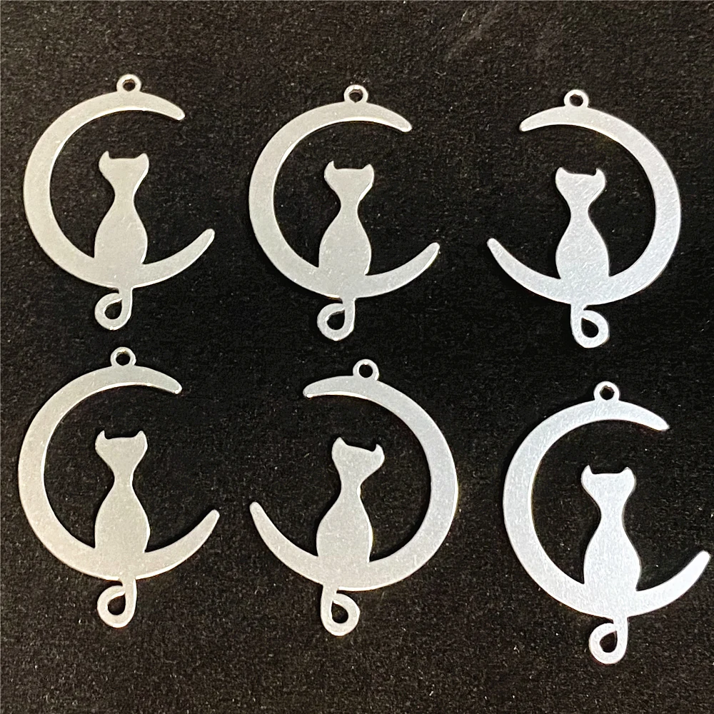 love Pet New Moon Cat Pendant 5pcs Stainless Steel Sitting Cat Half Moon Fashion Charms Bracelet Findings Diy Jewelry Making