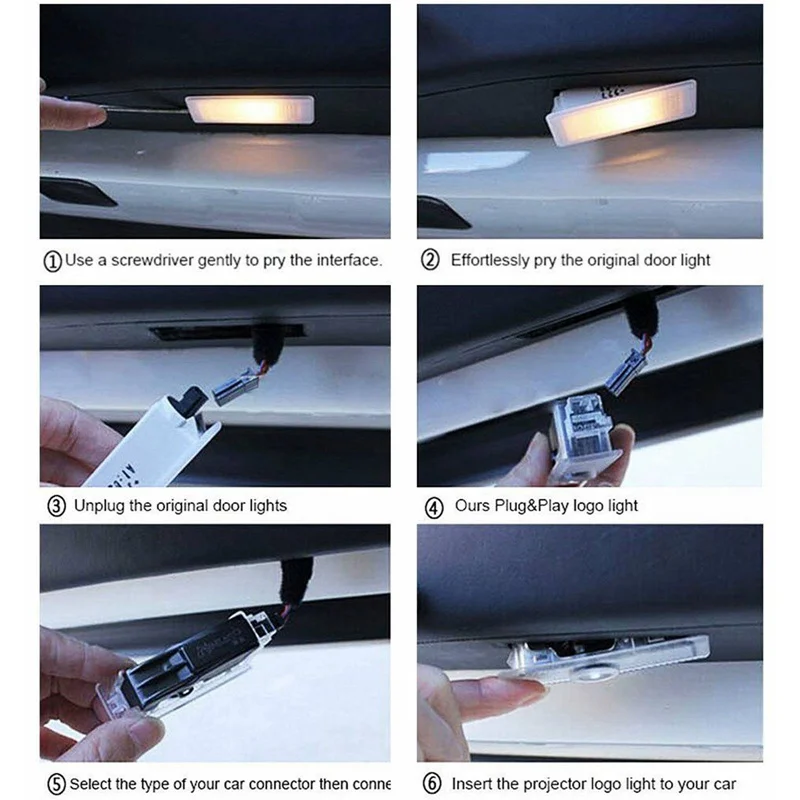 Как установить: используйте инструмент для установки для удаления и отключения оригинальных ступенчатых огней двери; Затем для установки новых огней.