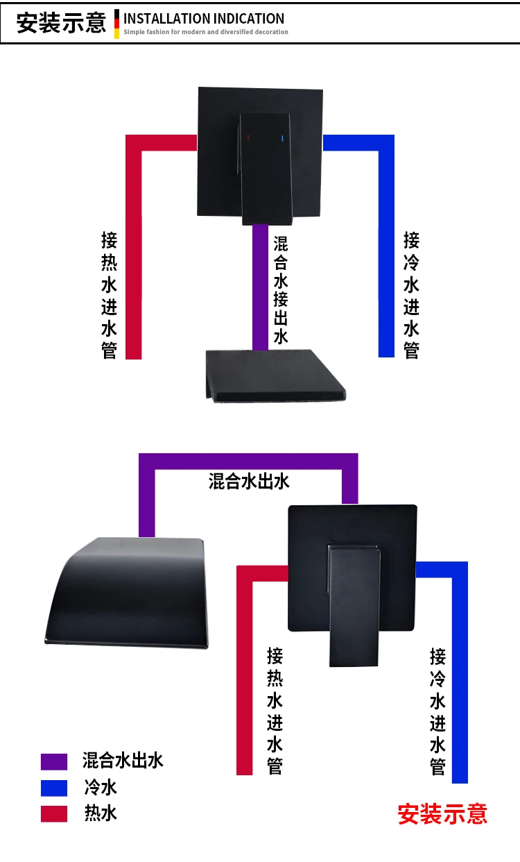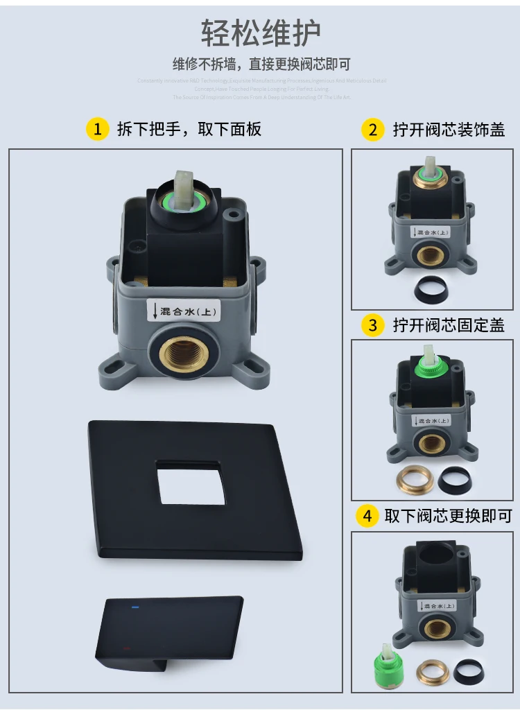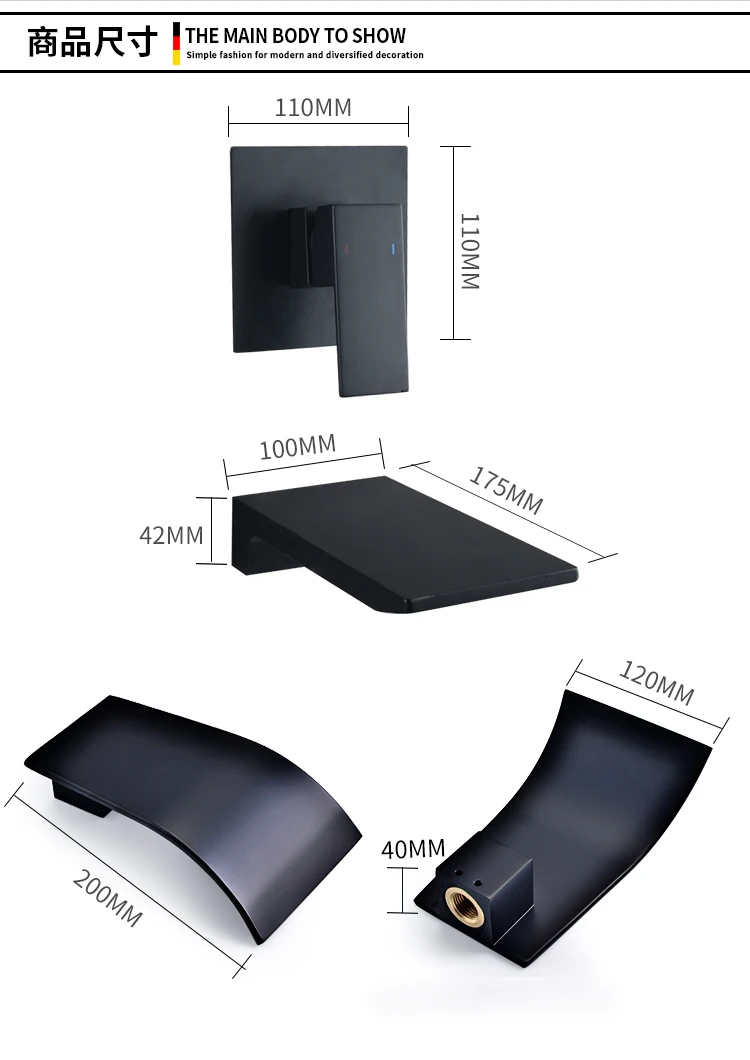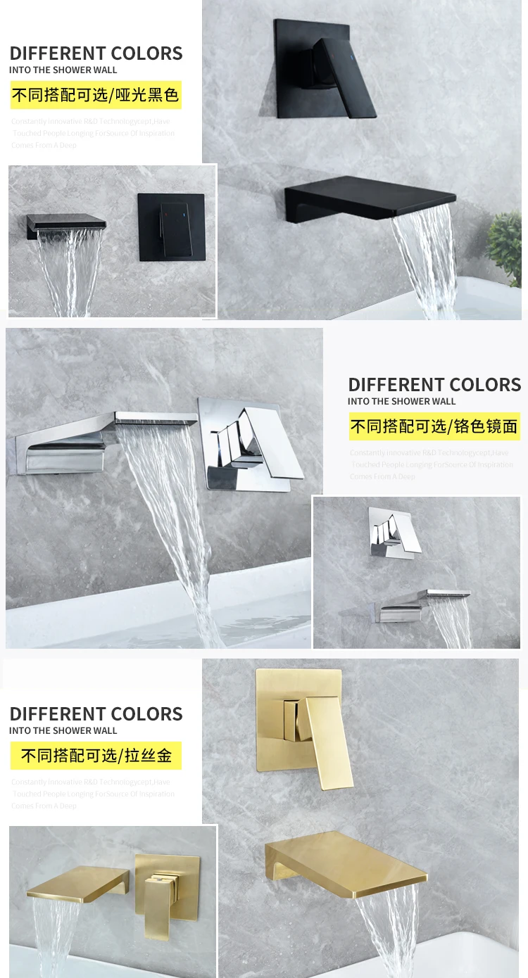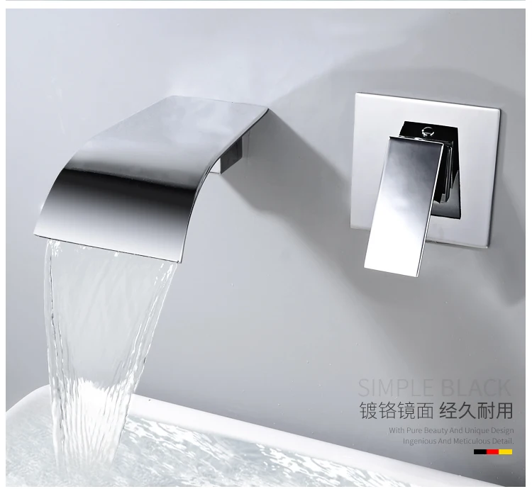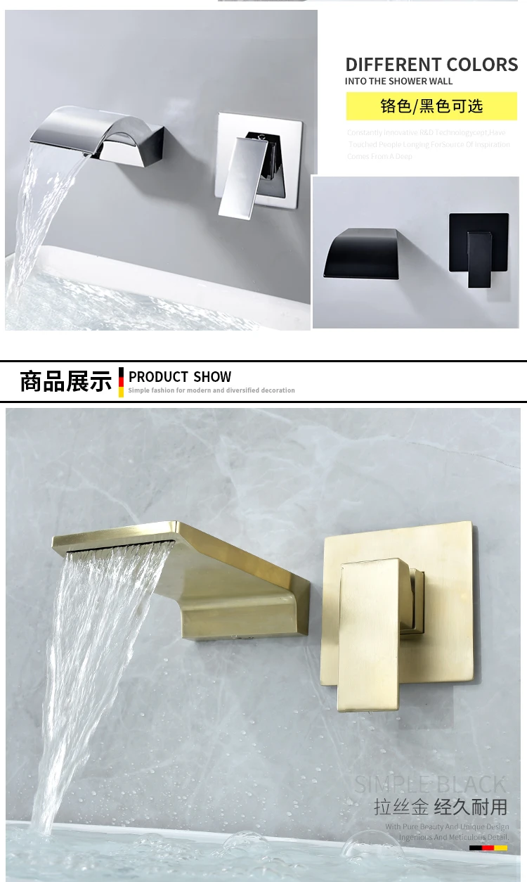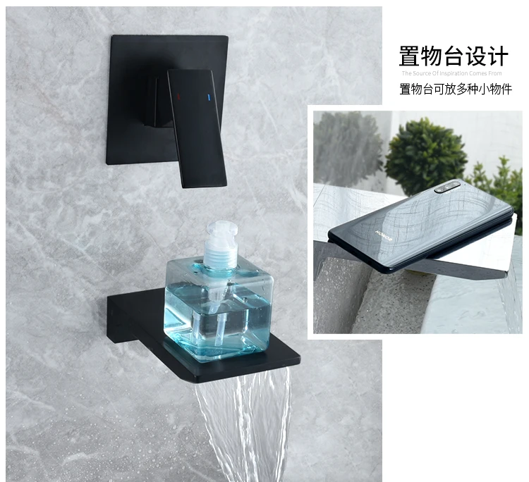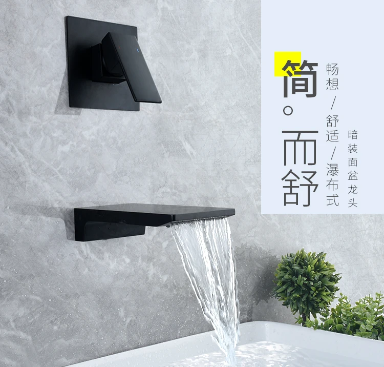 Beiluode матовый черный натуральный водопроводный кран для раковины смеситель для раковины Смеситель для умывальника ванная комната в стене установка AM1019