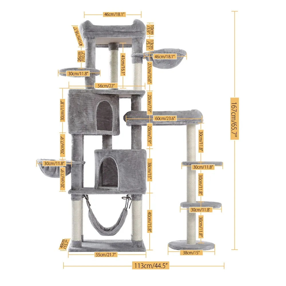 ·Многофункциональный центр: это Многоуровневое кошачье дерево предоставляет вашим кошачьим друзьям центр активности «Все в одном» для игры, вздремнуть или бегать вокруг и быть настолько активным, насколько захотят. Красивый плюшевый верхний окунь с поднятым краем, чтобы ваши кошки могли отдохнуть на голове, глядя в окно; Кубическая Закрытая пещера и свисающий гамак предлагают различные роскошные ощущения от ногтей; И отверстие для лазания, предназначенное для удовольствия авантюрных кошек.