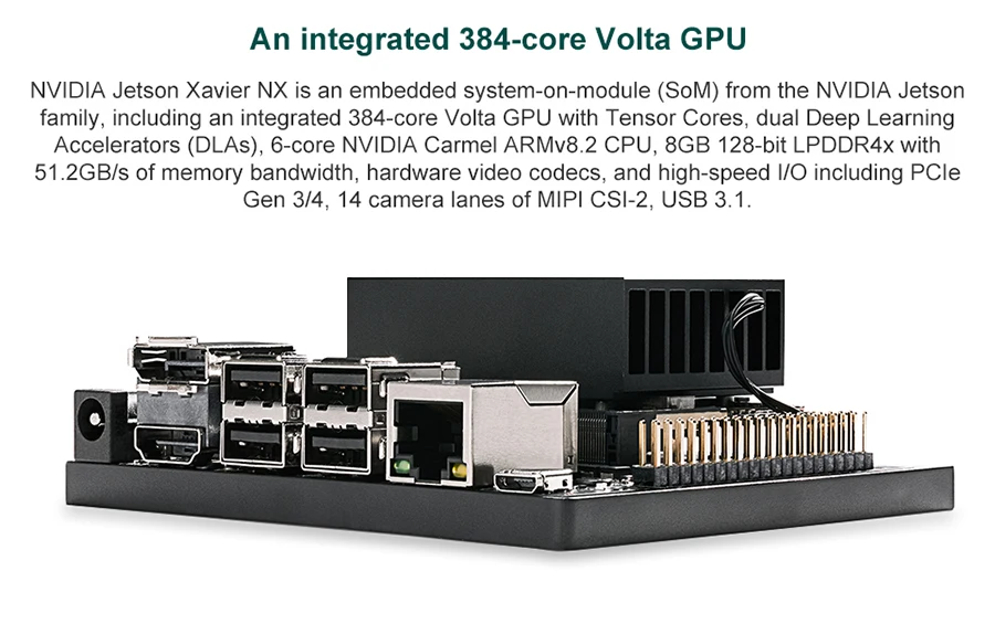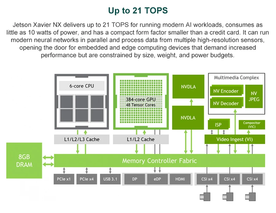-Компактный модуль Jetson Xavier NX-достаточно мощный для продвинутых приложений AI с низким энергопотреблением -Поддерживает весь стек программного обеспечения NVIDIA для разработки и оптимизации приложений -Богатый I/O периферийные устройства для дальнейшего расширения AI-проектов -Встроенный вентилятор обеспечивает лучшее отведение тепла -Более чем в 10 раз производительность Jetson TX2 -Обеспечивает разработку приложений AI с помощью NVIDIA JetPack™SDK -Легко создавать, разворачивать и управлять ИИ на краю -Гибкая и масштабируемая платформа для выхода на рынок с уменьшенными затратами на разработку -Непрерывное обновление в течение срока службы продукта