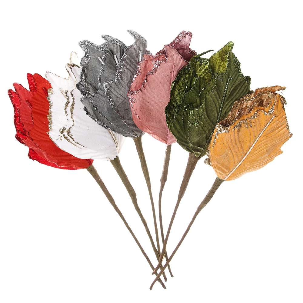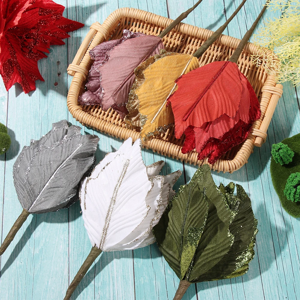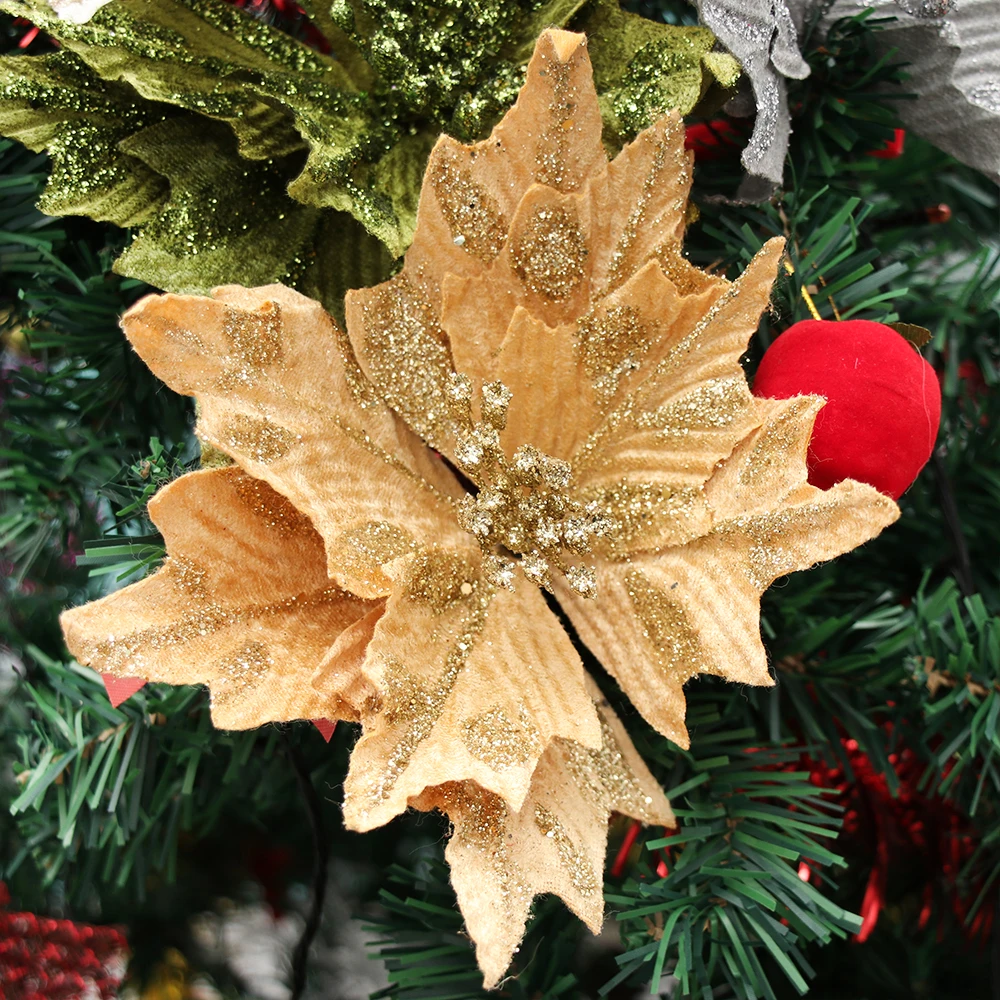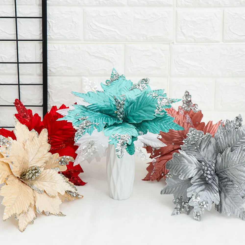 Ручной работы блестящие большие искусственные цветы Рождественский Декор пуансеттия поддельные цветы для DIY Рождество Свадьба Новый год украшение дома