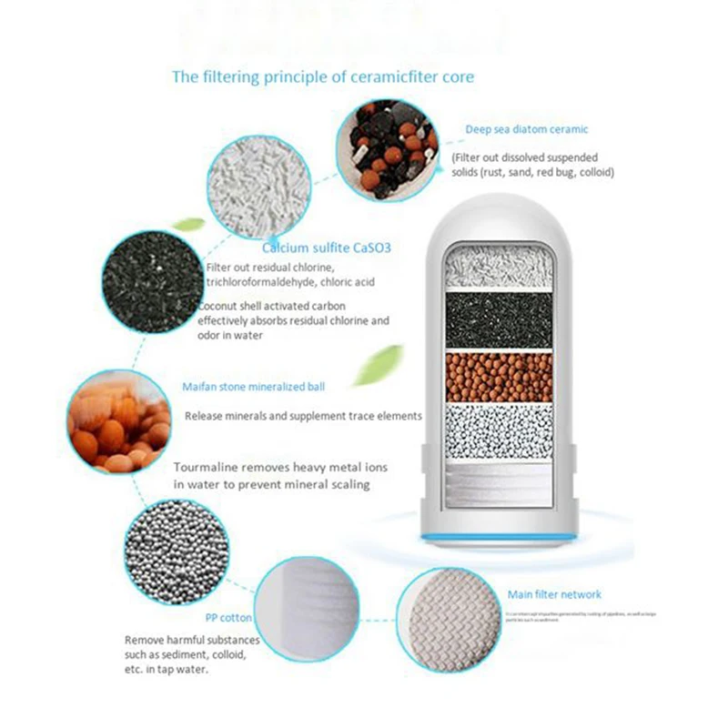 Фильтрующий материал, который может эффективно поглощать вредные вещества в воде, такие как остаточный хлор, почва, песок, ржавчина, коллоидные и другие крупные частицы примесей.