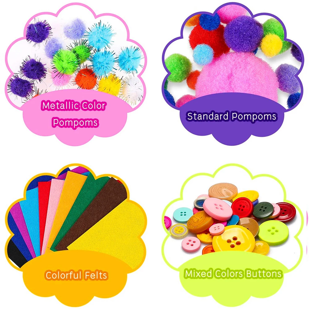Подготовьте все виды с более чем 200 штук поделок. Идеально подходит для создания красивых животных, декорирования рюкзаков и сотовых телефонов, для потрясающих цветочных композиций и коллажей-с этими огромными художественными комплектами список бесконечен.