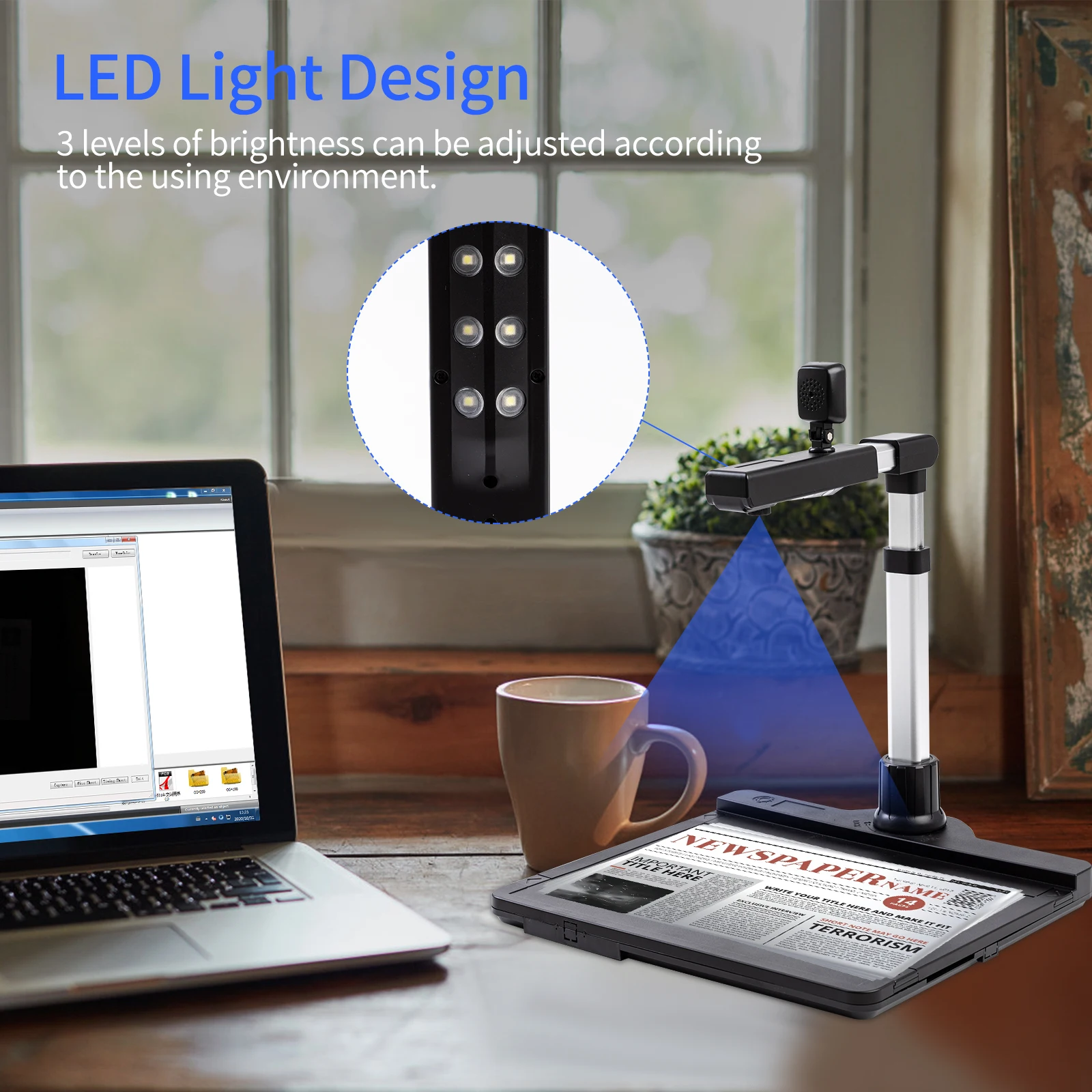 【Высокоскоростной сканер 】:Просто нажмите на мышь, затем вы можете получить изображение примерно за 1 секунду, очень эффективно. Высота сканера регулируется, и размер сканирования до A3. Поддержка съемки/непрерывной съемки.