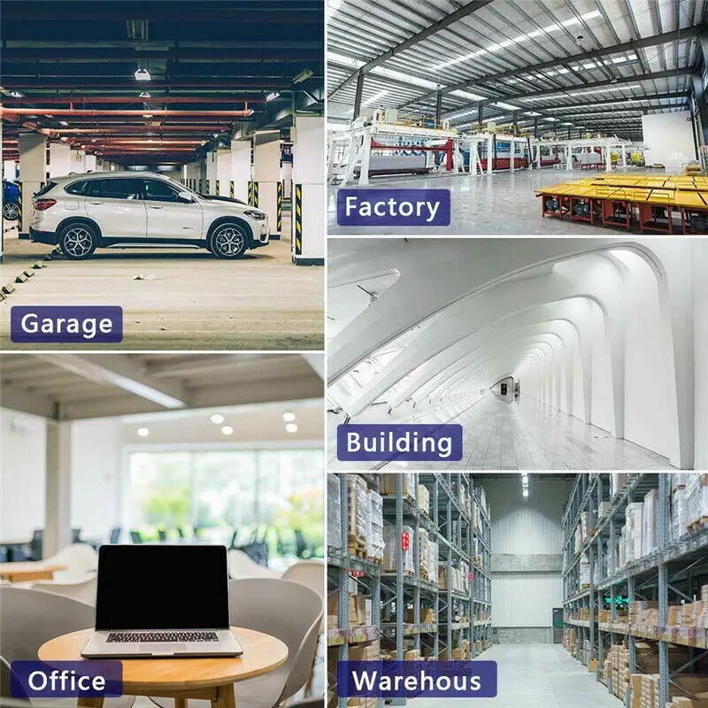 Отличная альтернатива традиционным флуоресцентным лампам для гаражей, подвалов, магазинов, мастерских, общественных объектов, комнат отдыха, складов, амбаров, комнат оборудования и других промышленных рабочих мест с освещением большой площади.