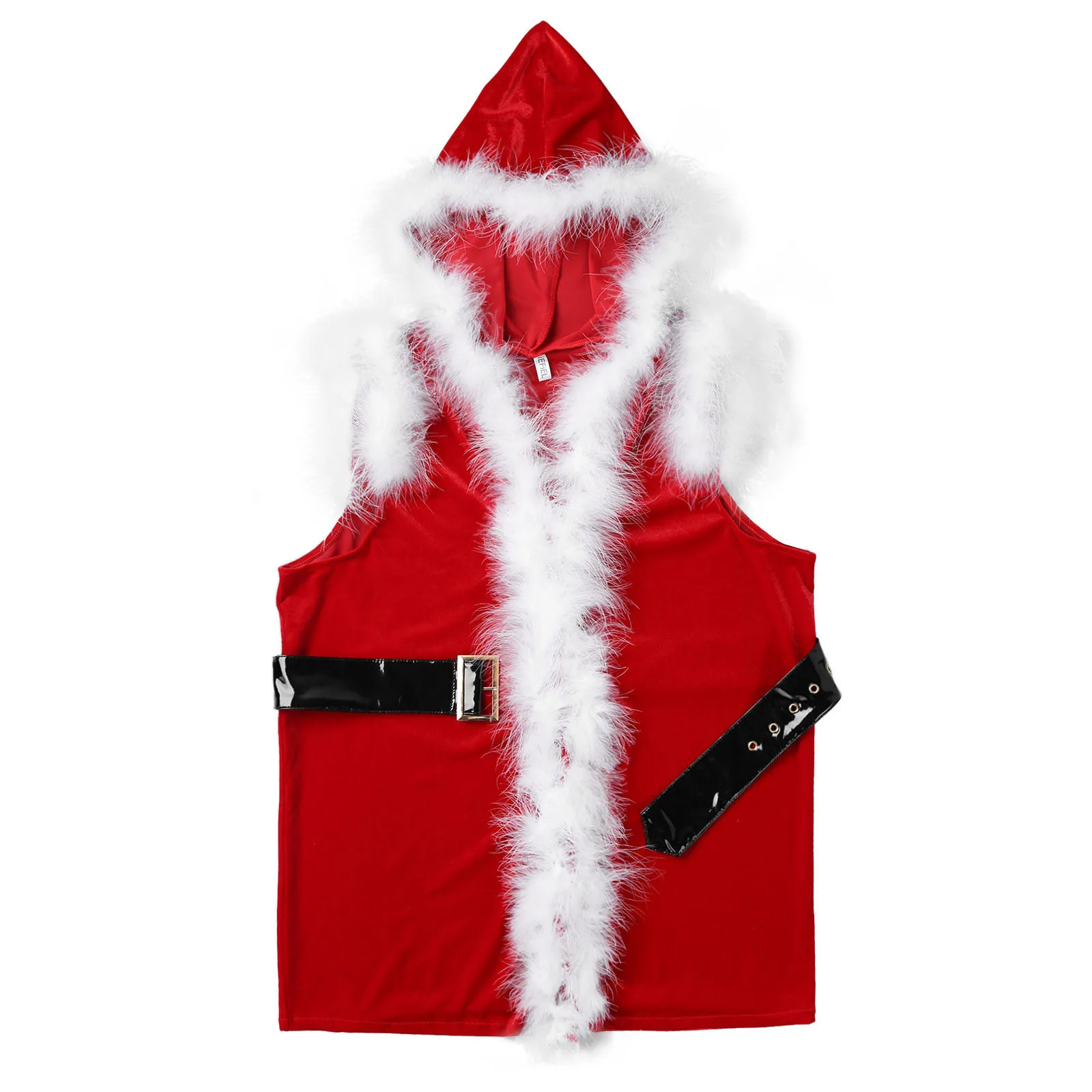 Мужское пальто с капюшоном без рукавов с кожаным поясом с Санта-Клаусом боксеры шорты.