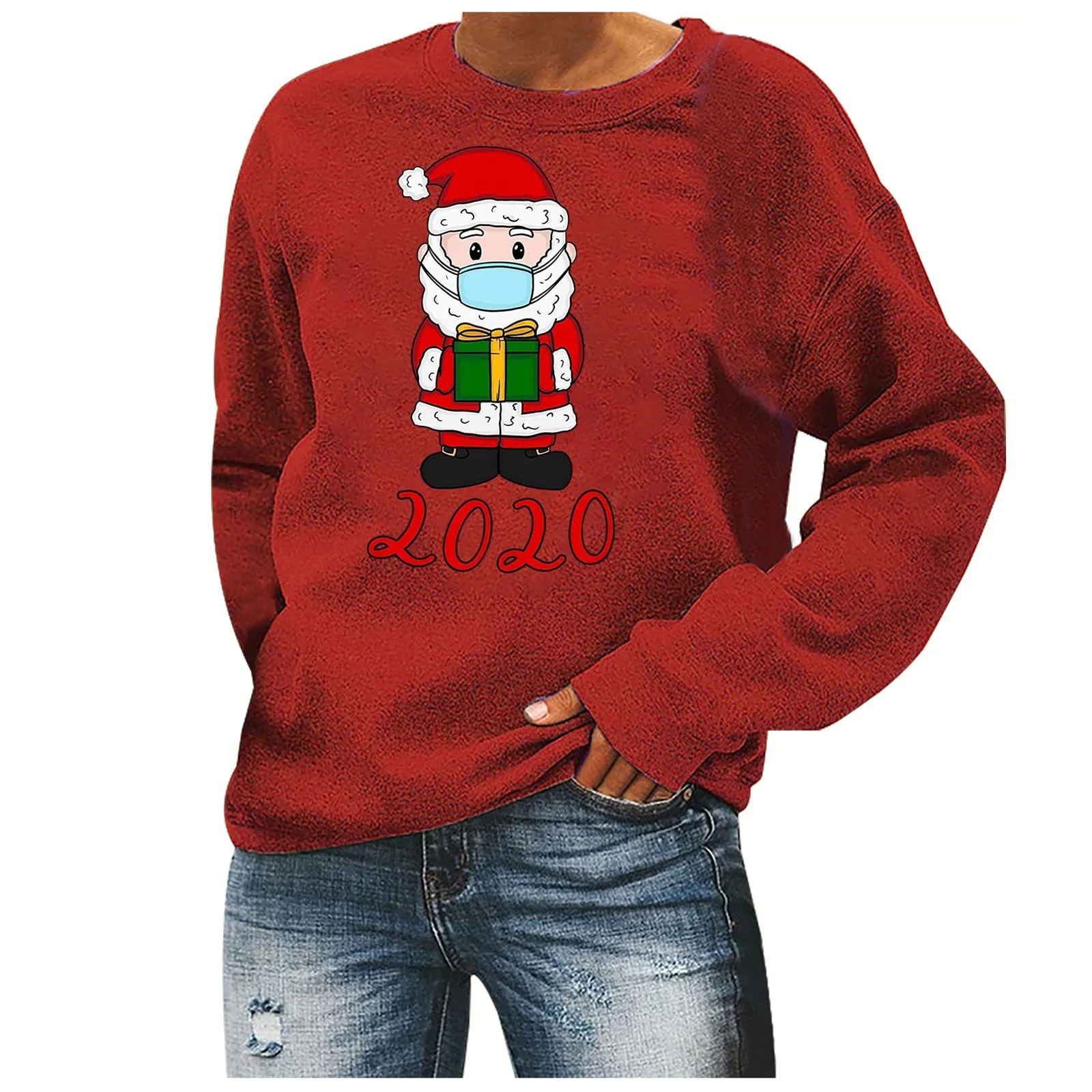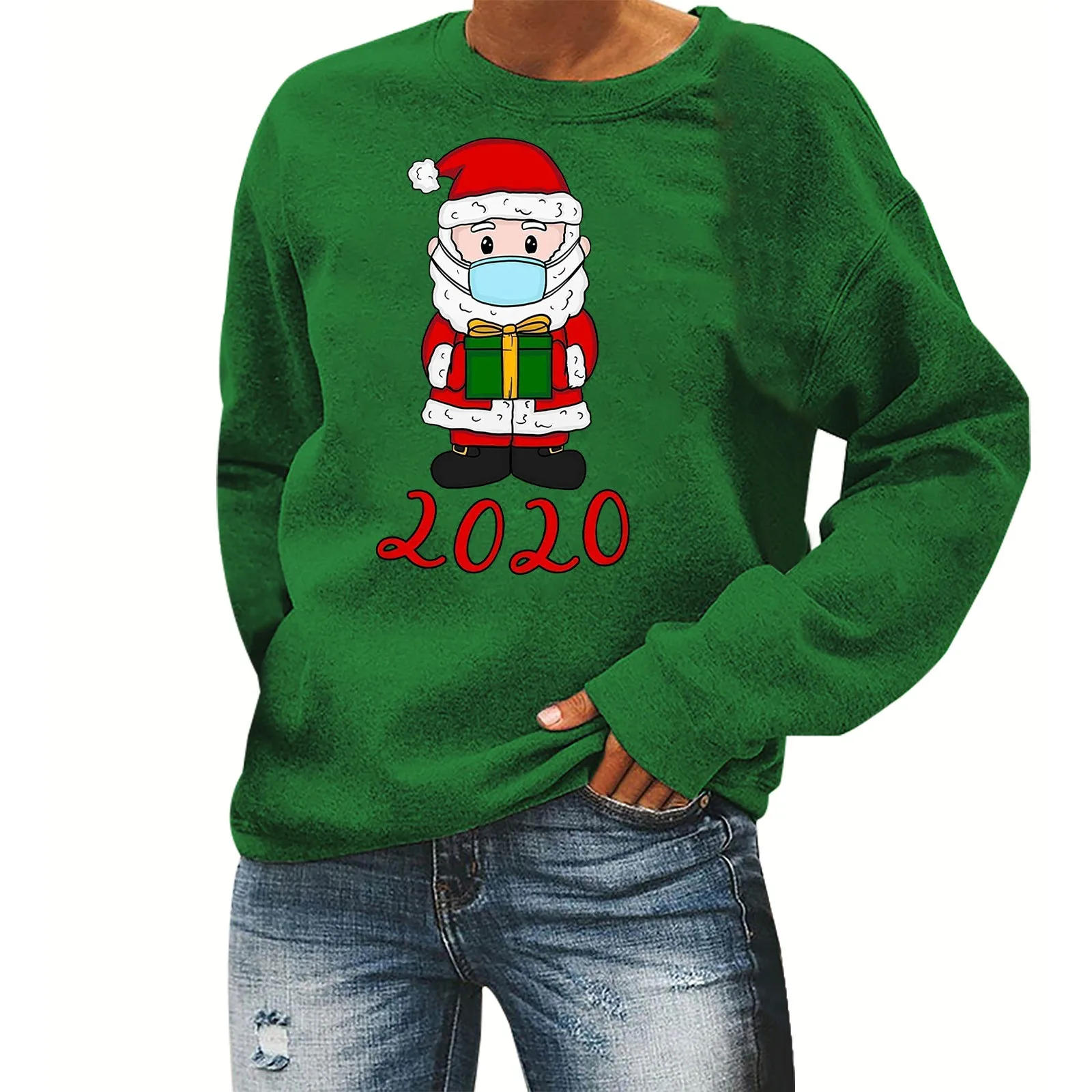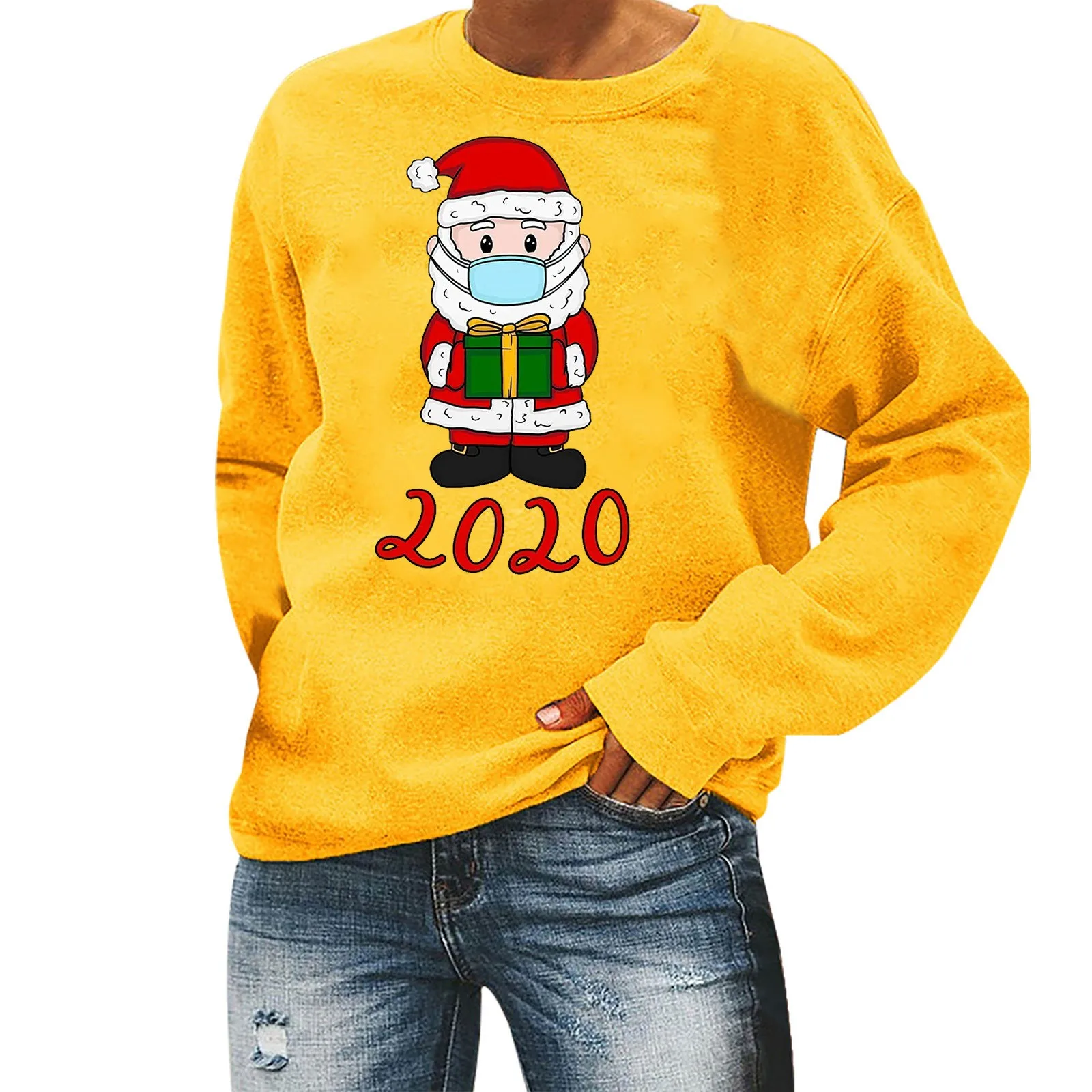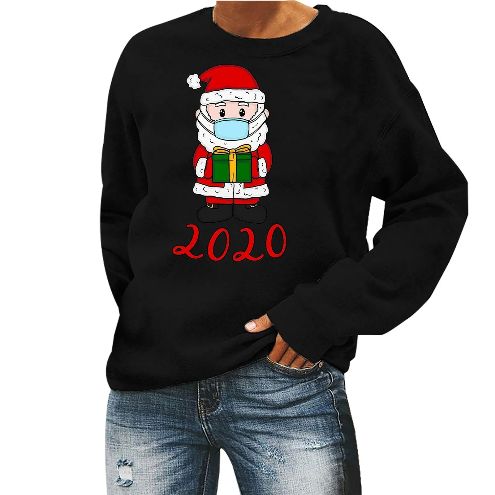 Женские топы, модный Рождественский свитер с длинными рукавами и принтом в виде маски
