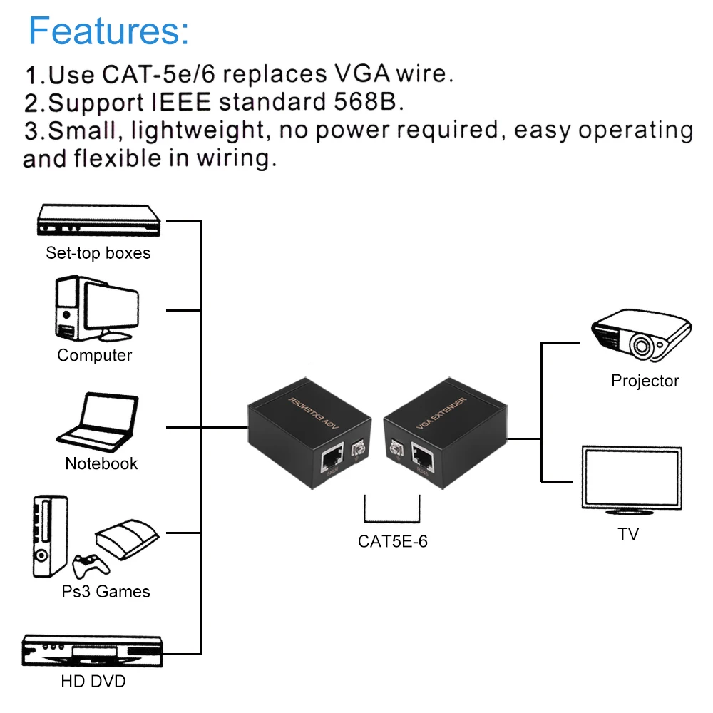 1 пара VGA к RJ45 расширитель