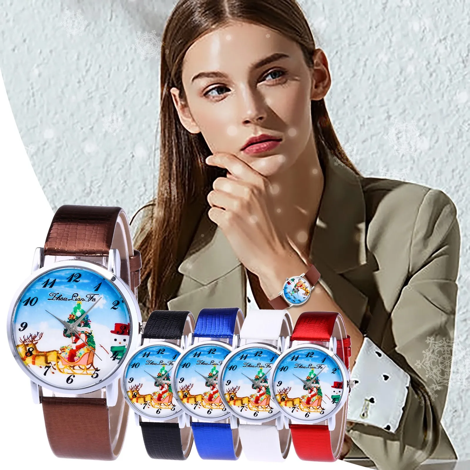 Рождественская мода S ^ imple ремень часы циферблат дамы кварцевые рождественские часы