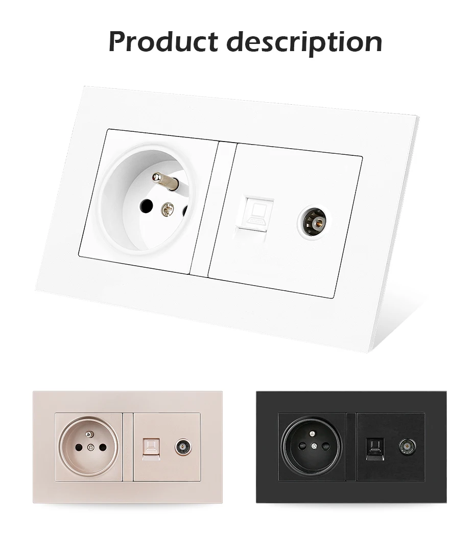 1. 100% абсолютно новая и высококачественная панель настенного гнезда. 2. Этот продукт должен быть установлен профессиональным электриком. 3. Он широко используется во многих местах, таких как отель, ресторан, дом, общественные места.